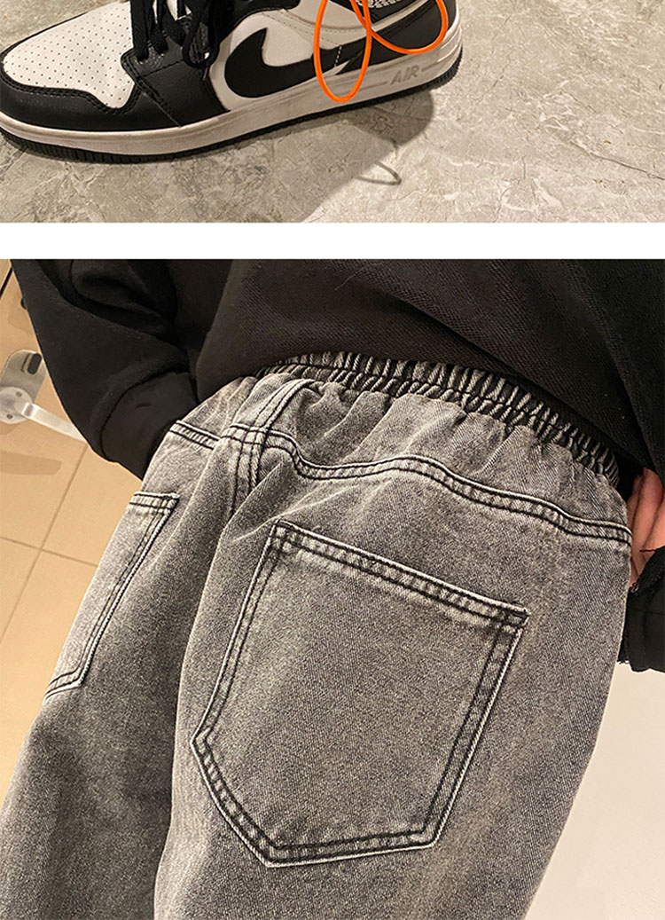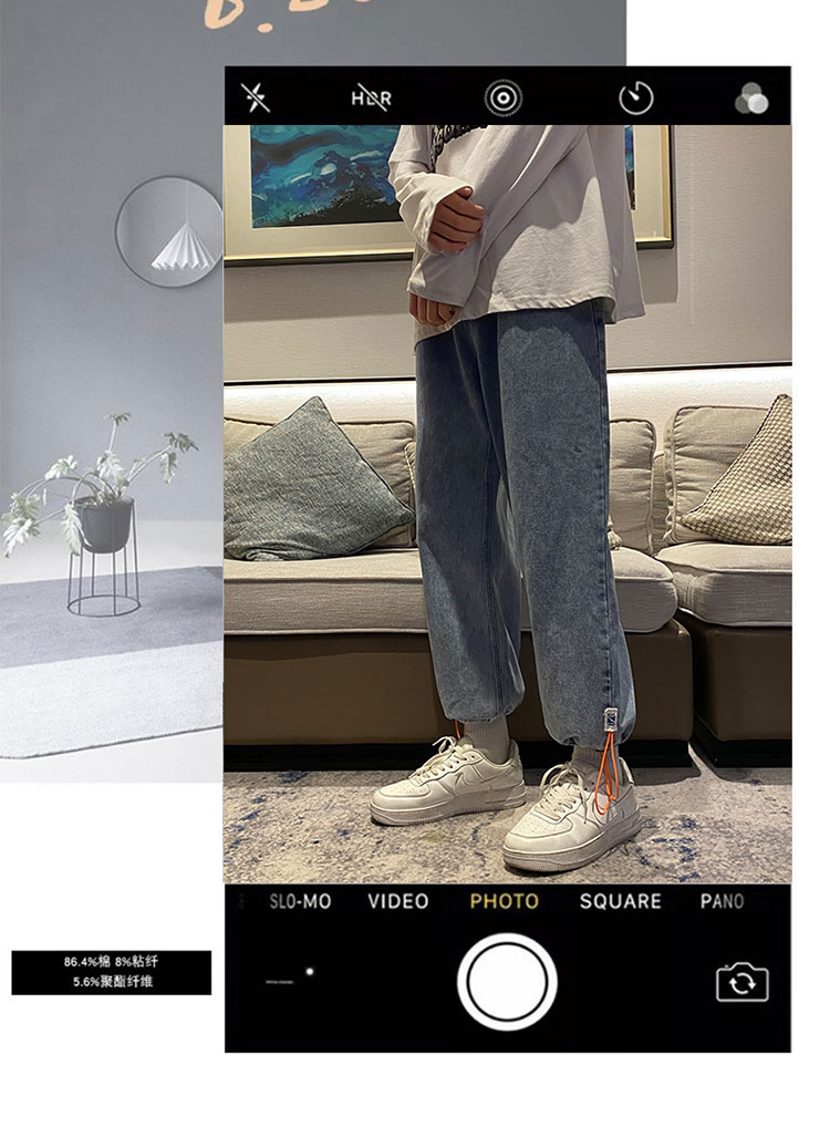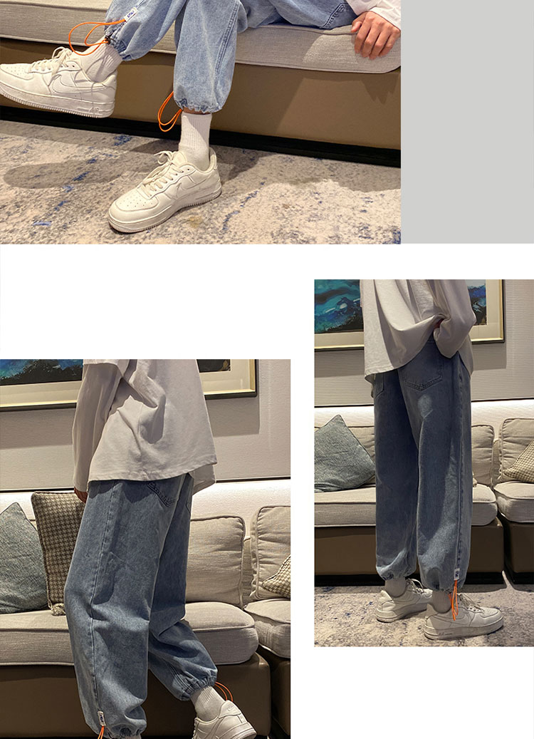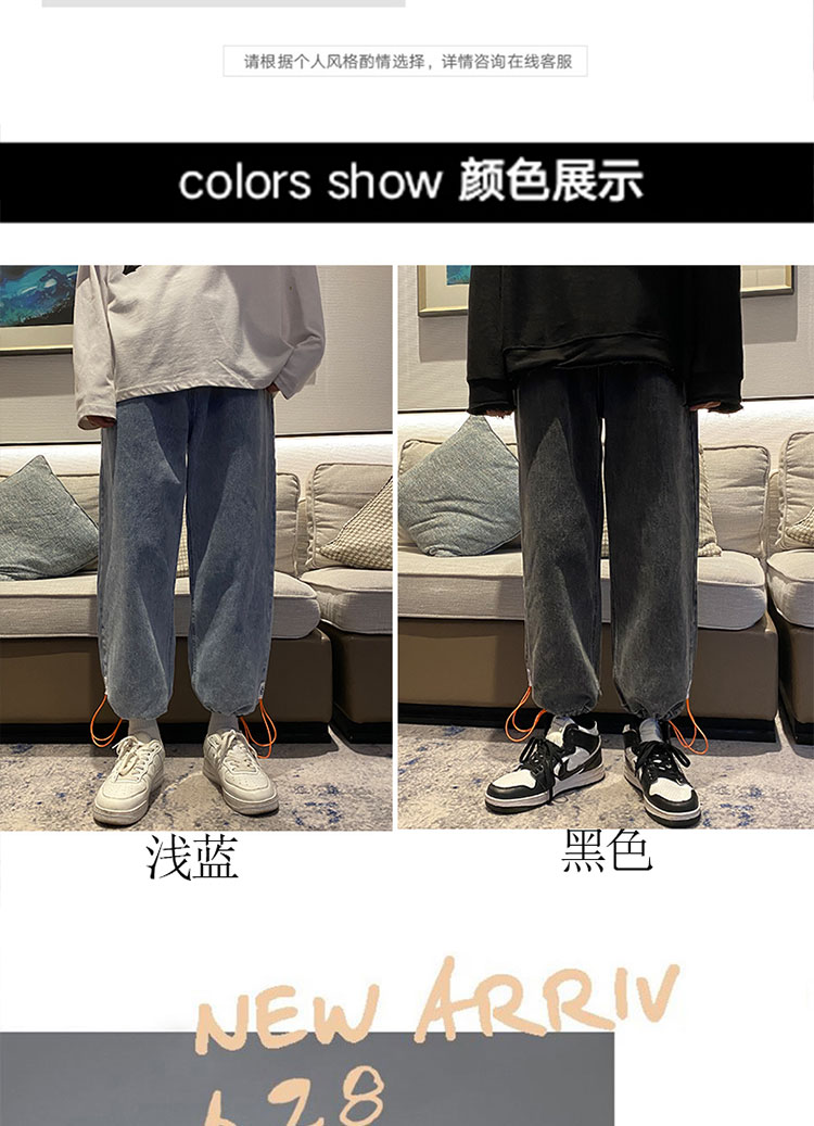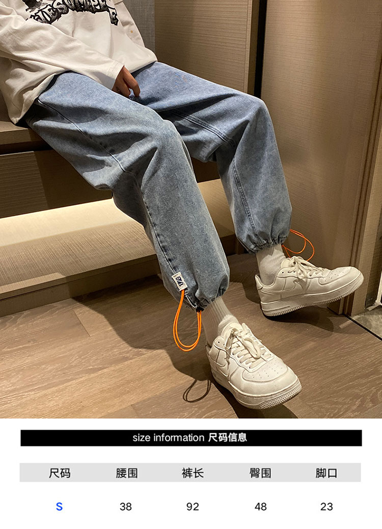 抽绳束脚九分牛仔裤男士春秋款复古潮流休闲百搭潮牌痞帅学生裤子