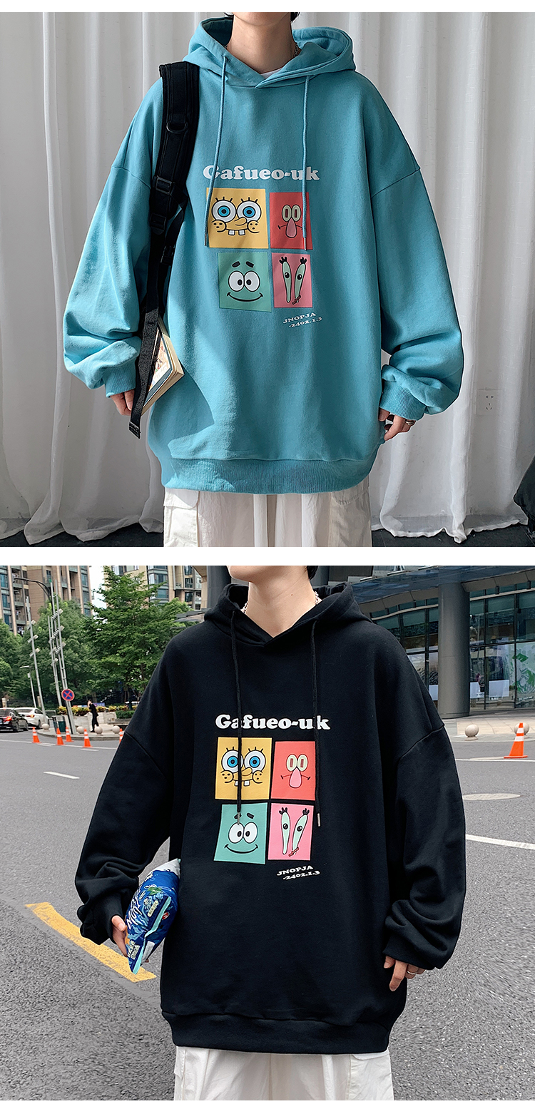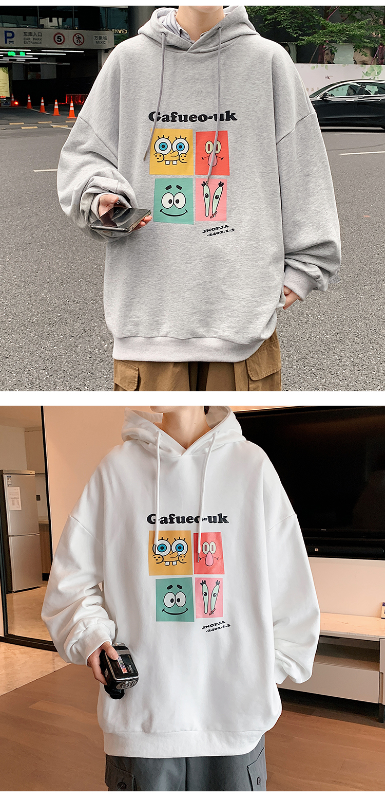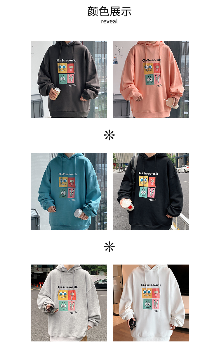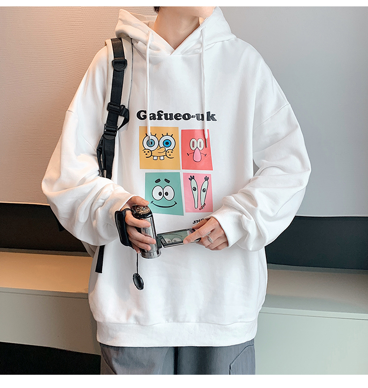 动漫白色卫衣男士潮ins连帽春秋款宽松大码潮流百搭外套休闲港风