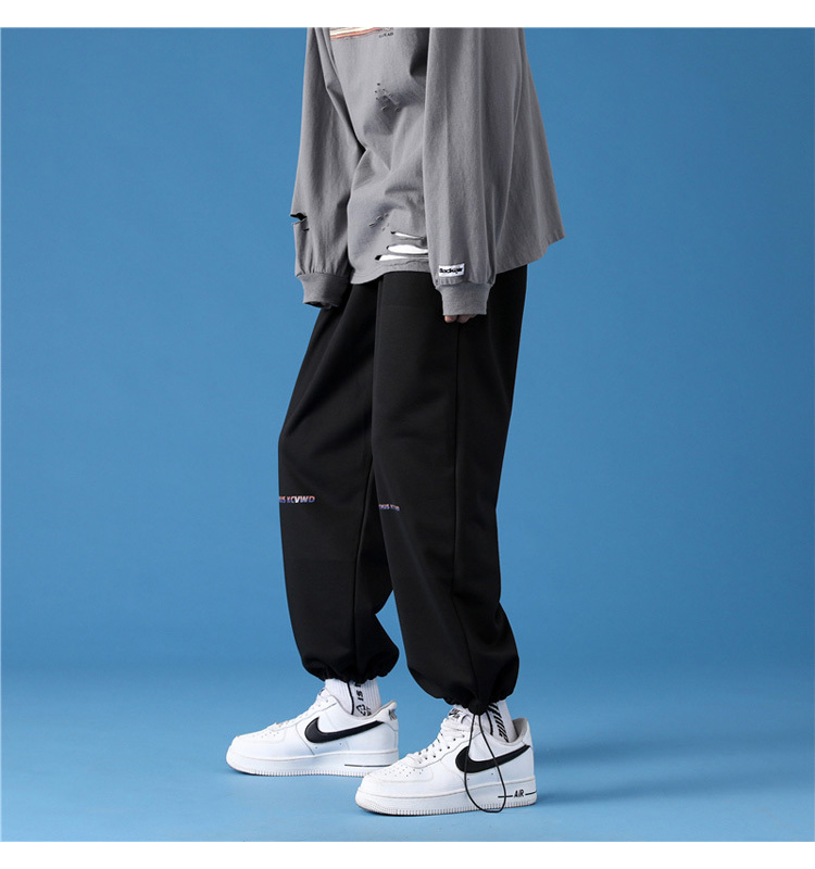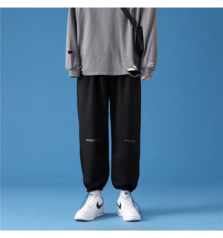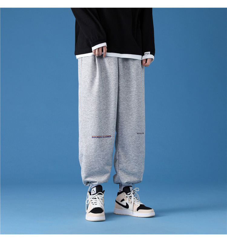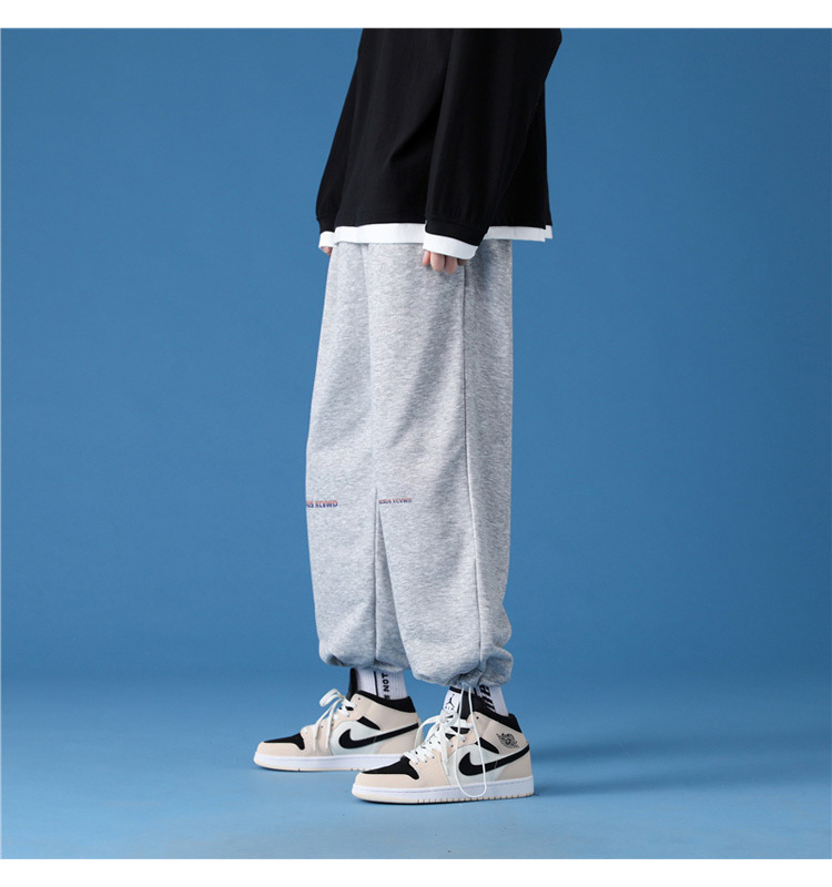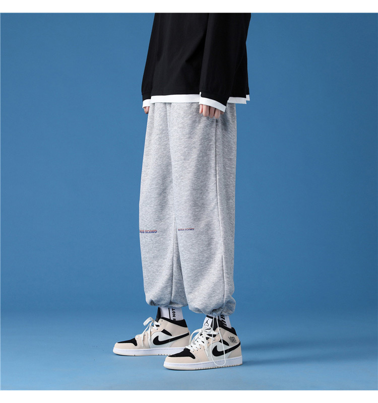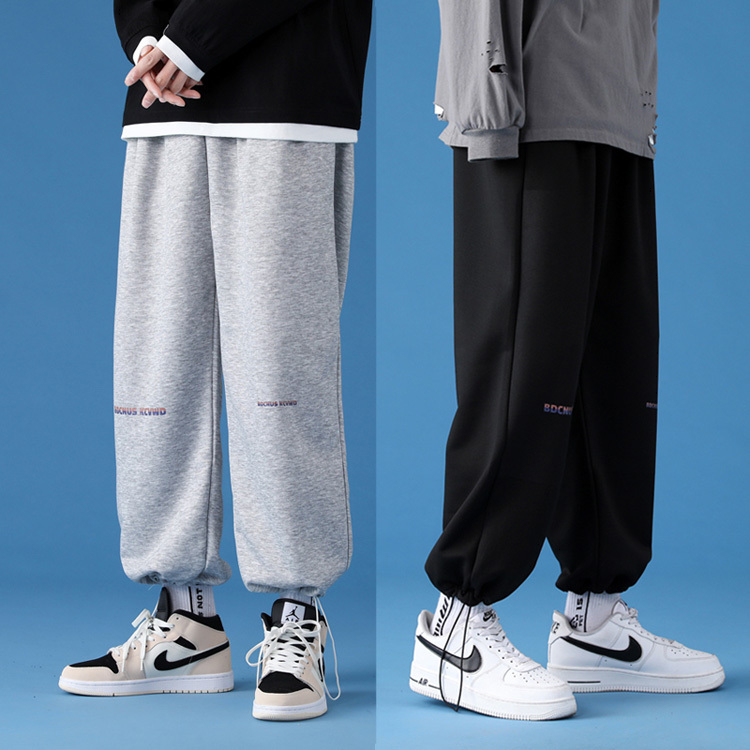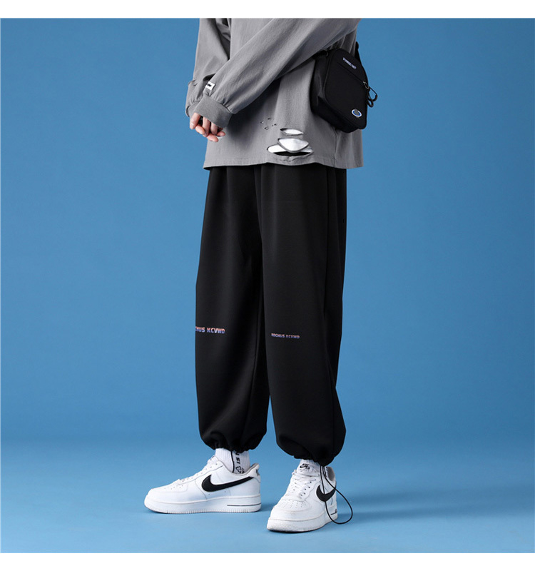 字母阔腿裤子男士宽松束脚春秋季vintage加肥大码运动休闲裤港风