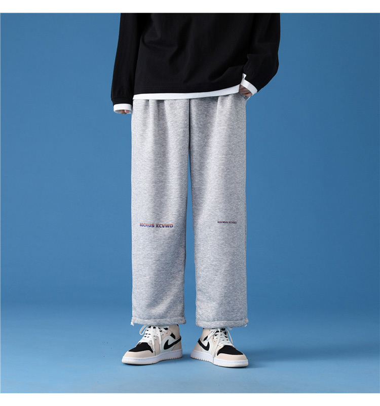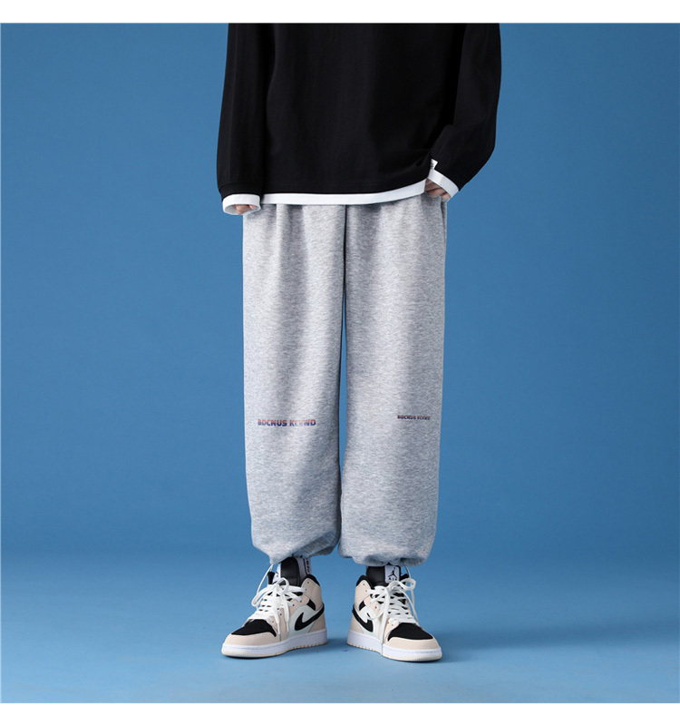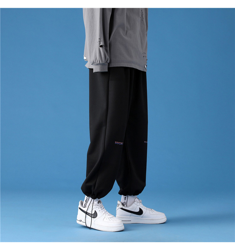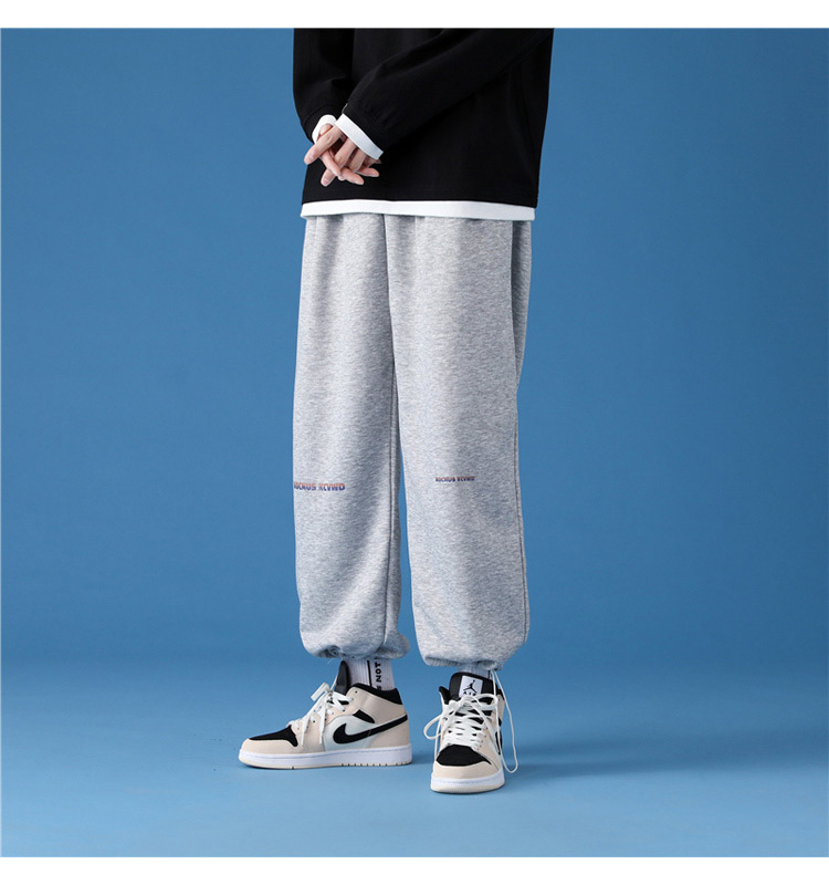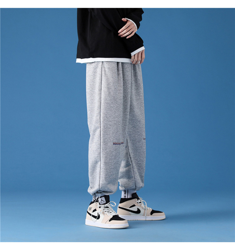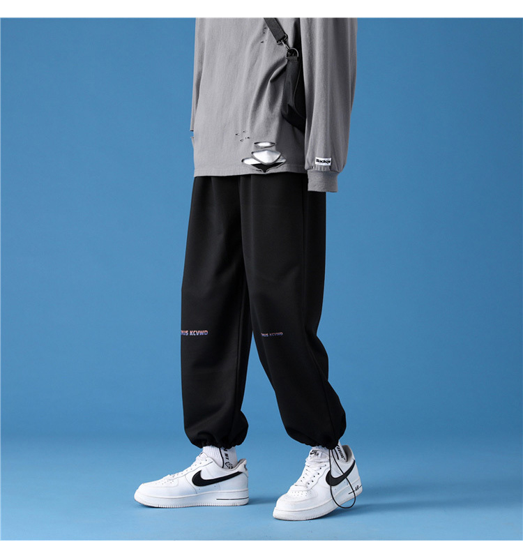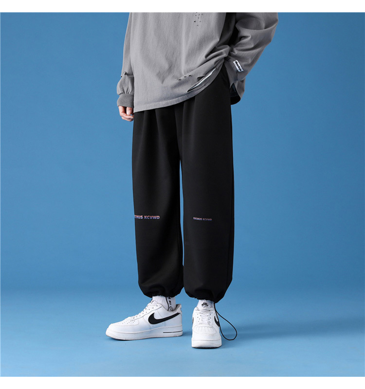 字母阔腿裤子男士宽松束脚春秋季vintage加肥大码运动休闲裤港风