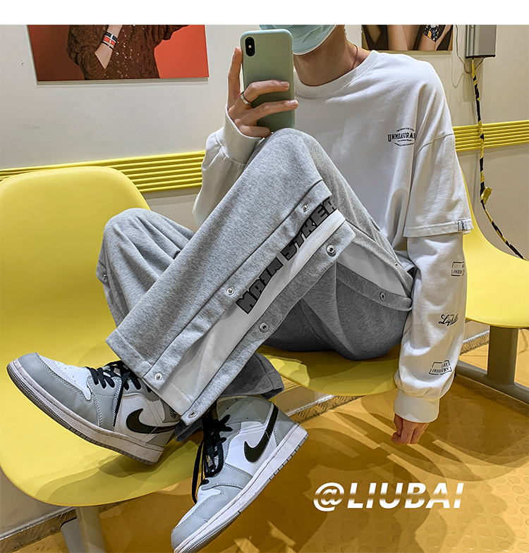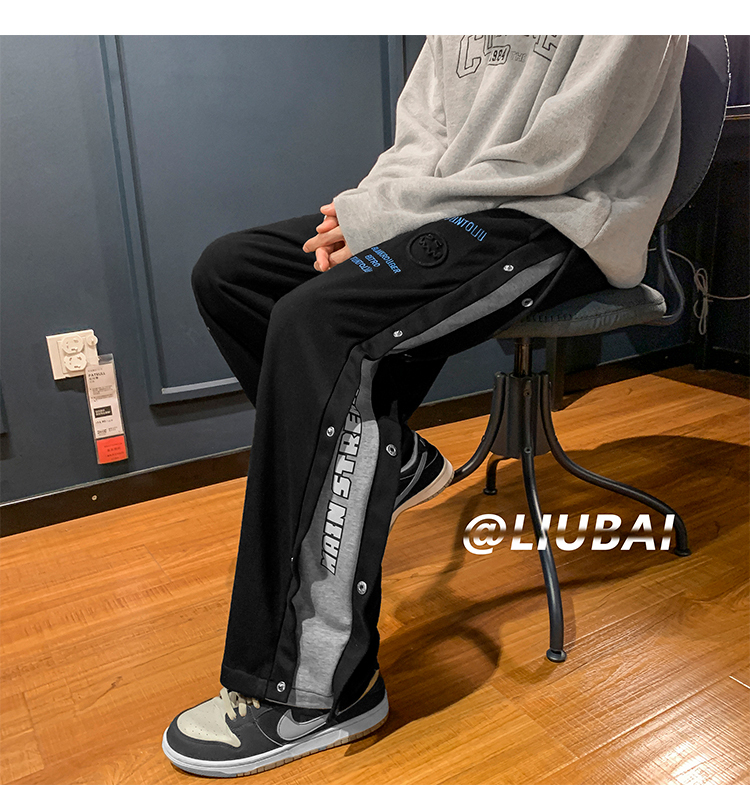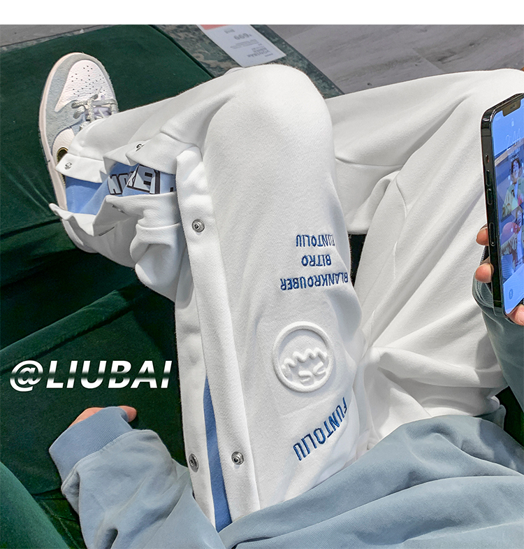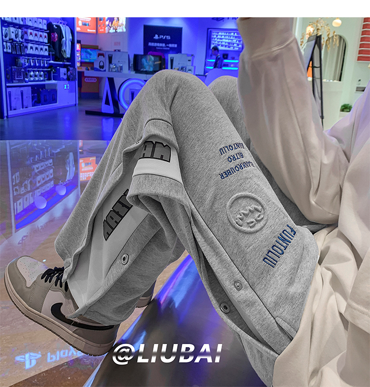 刺绣空压卫裤男士直筒潮流春秋宽松oversize百搭潮牌休闲运动裤子