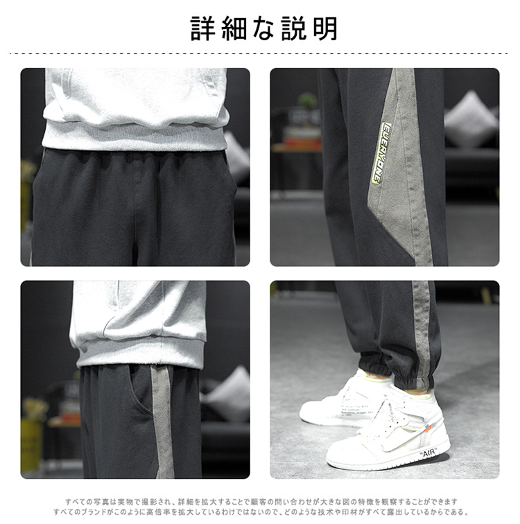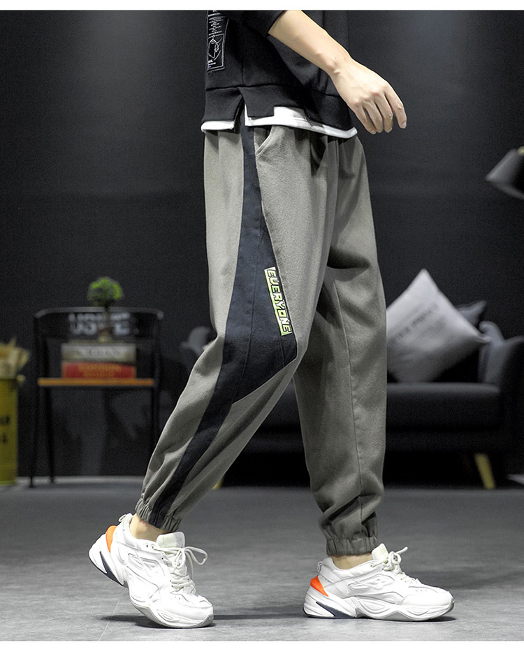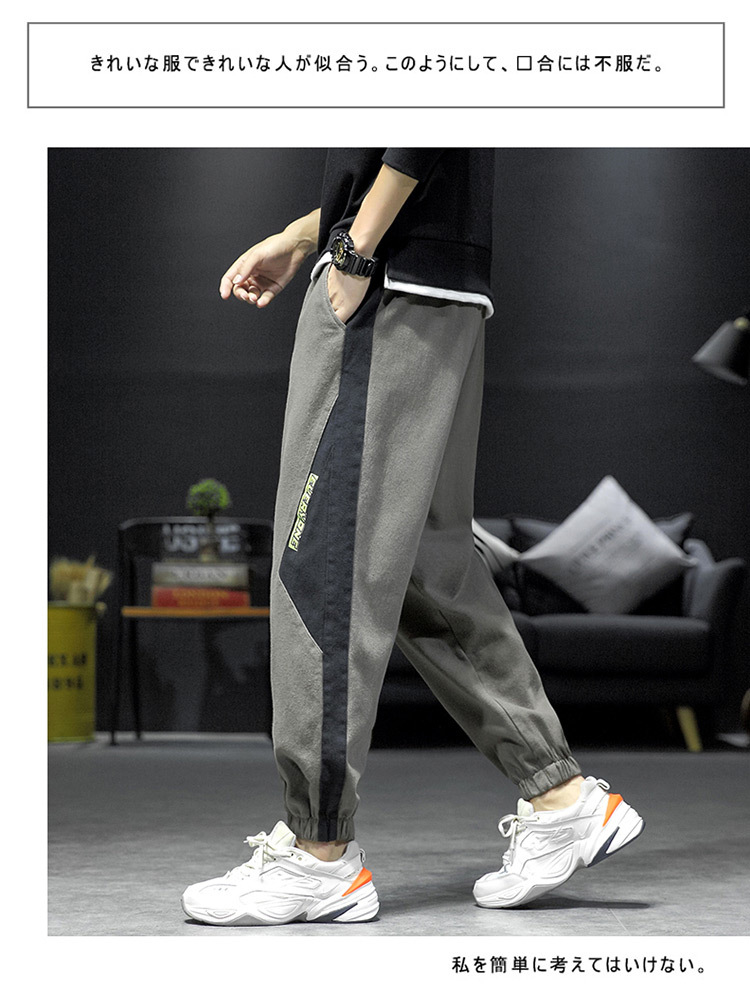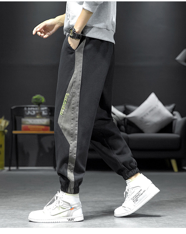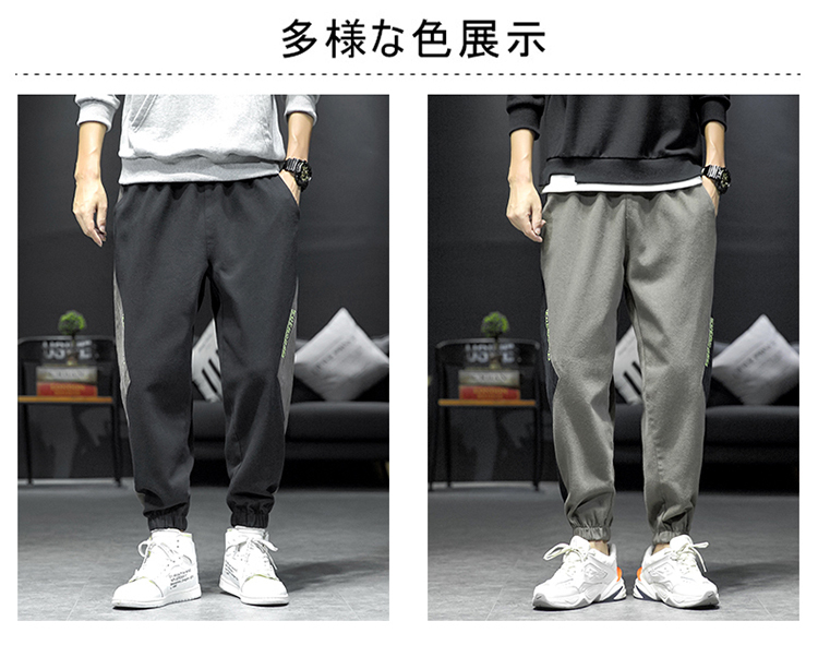 拼接裤子男ins潮流百搭春秋韩版宽松休闲束脚运动大码胖子九分裤