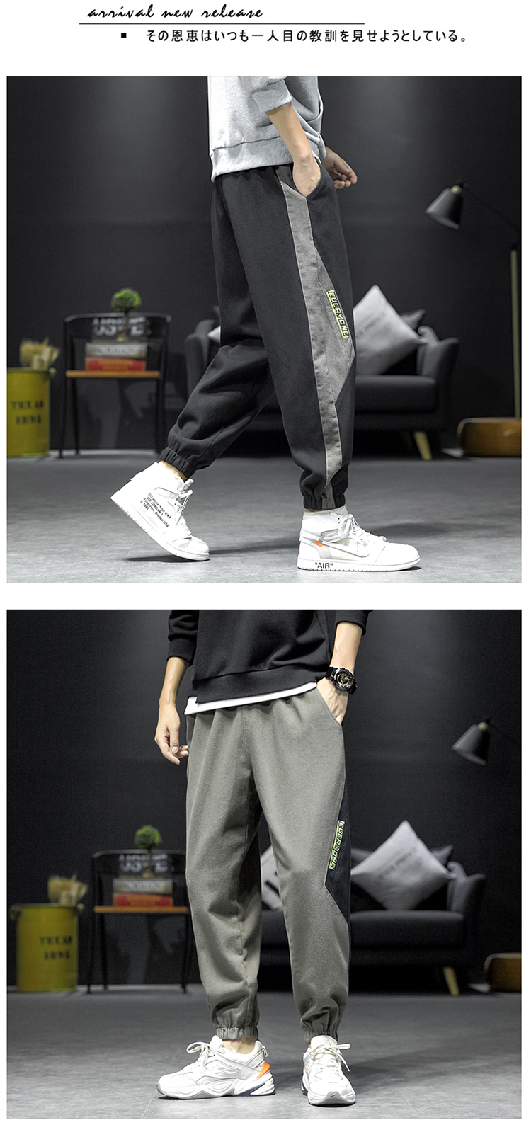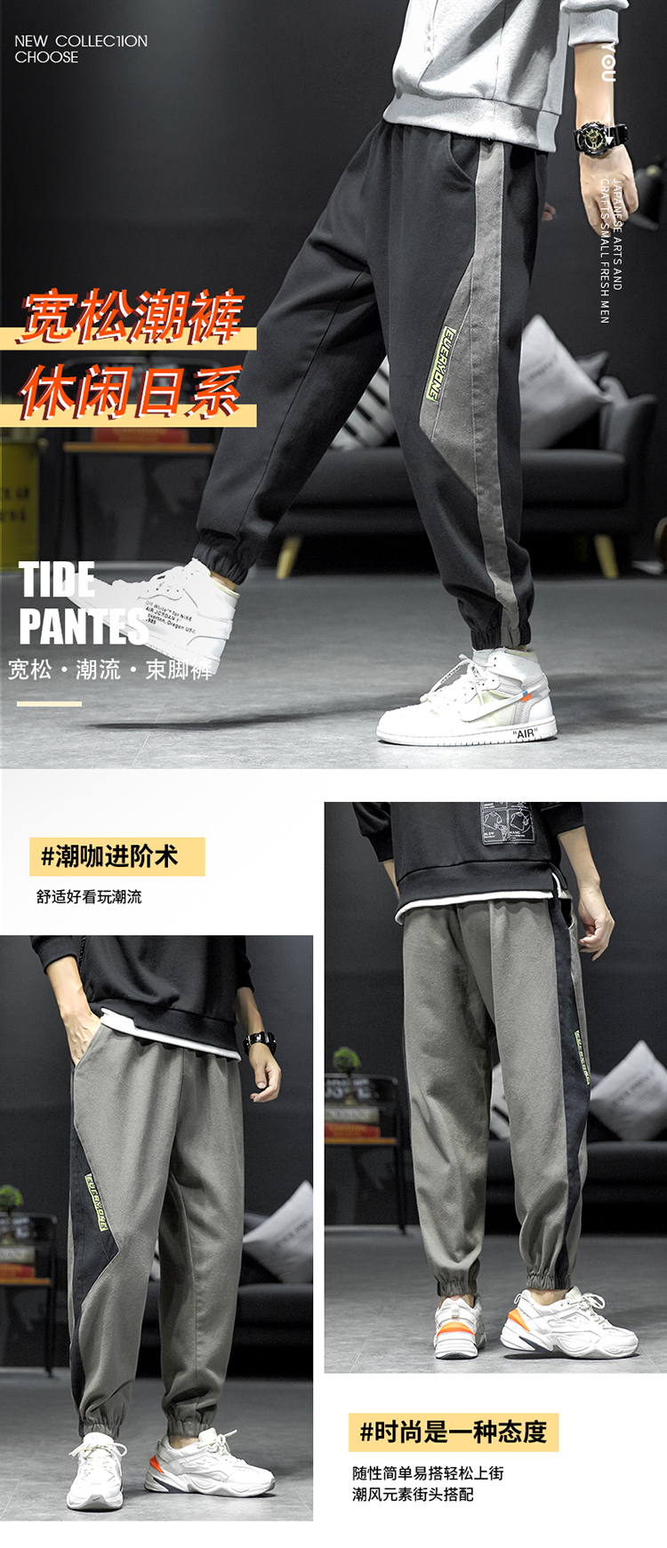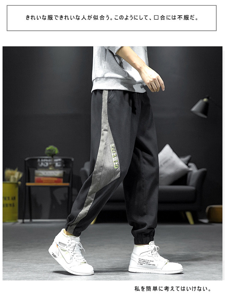 拼接裤子男ins潮流百搭春秋韩版宽松休闲束脚运动大码胖子九分裤