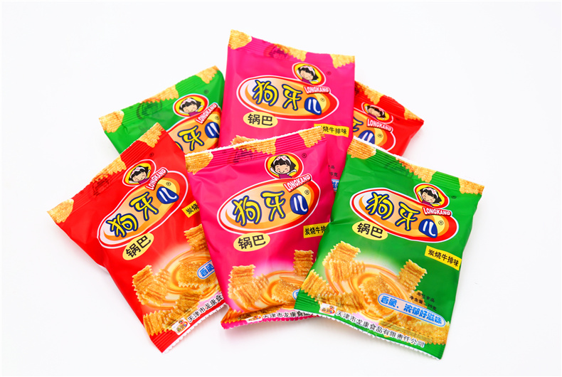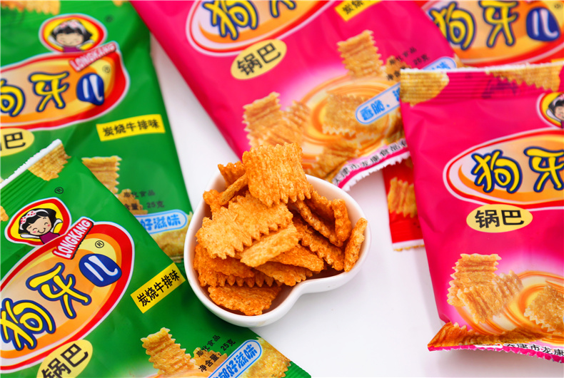 锅巴有三种颜色包装,口味都是炭烧牛排味