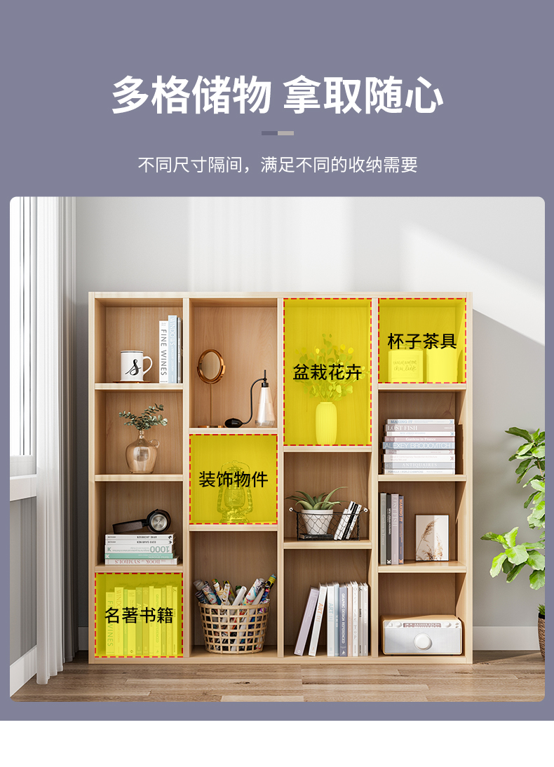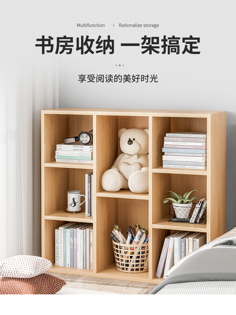 简易书架收纳简约置物架实木客厅置物架桌上面学生多层落地小书柜