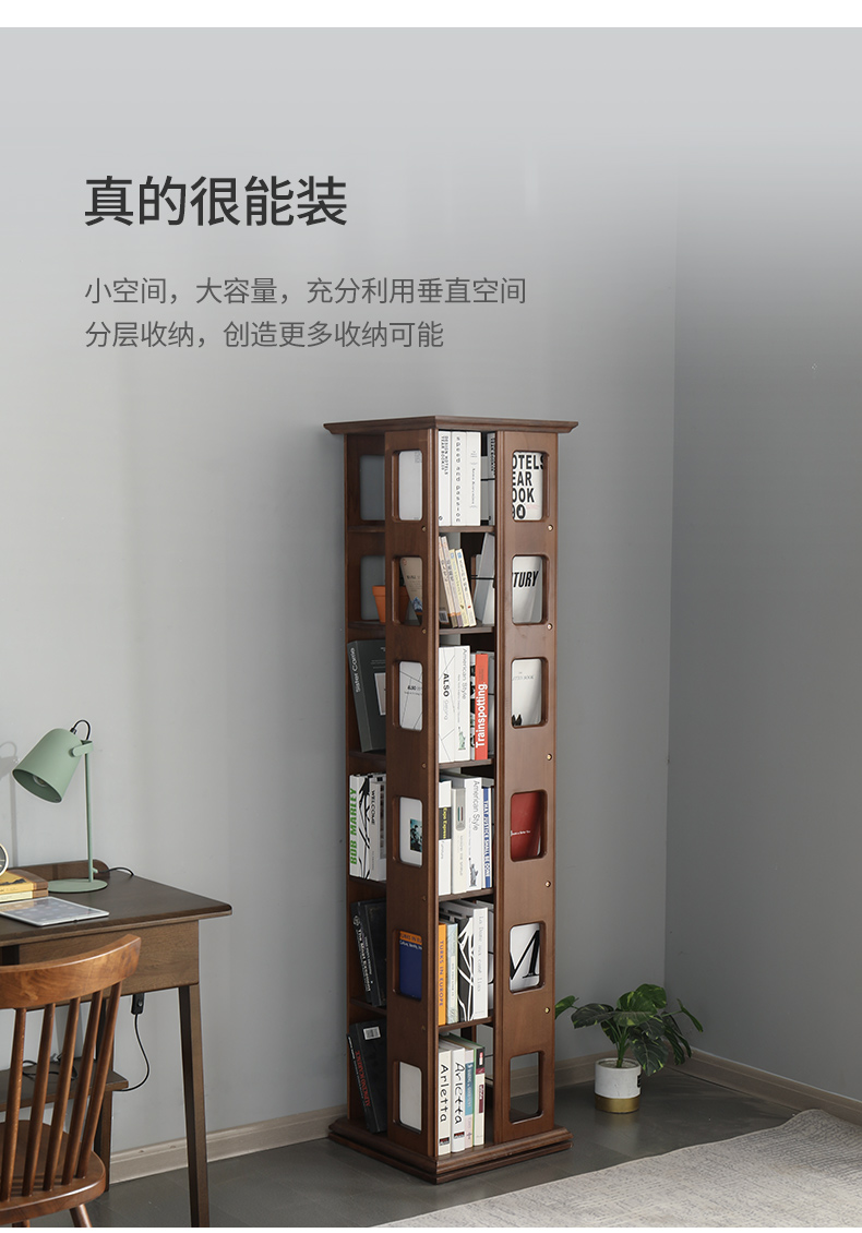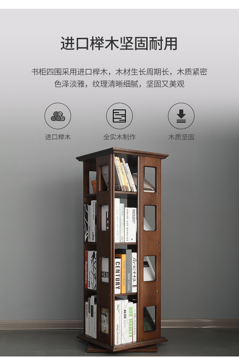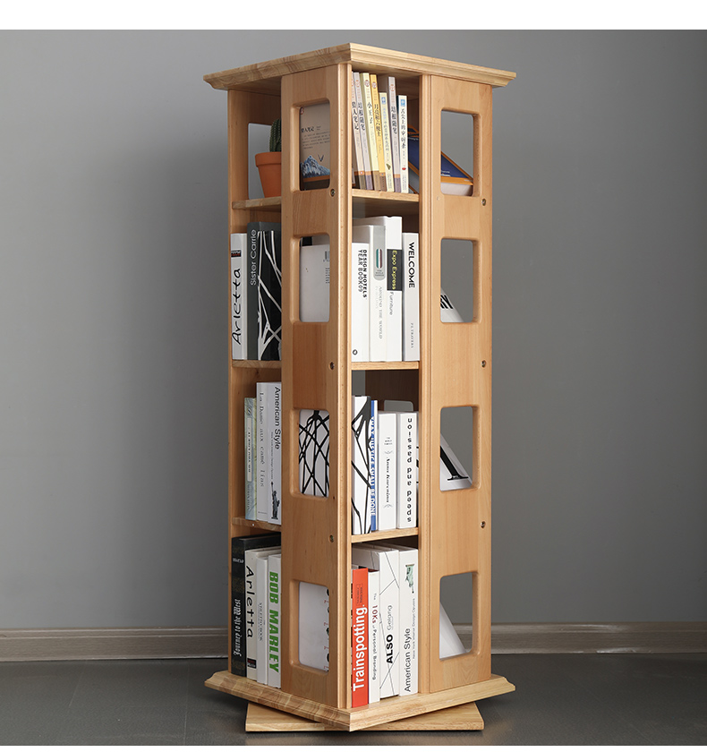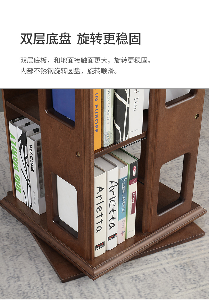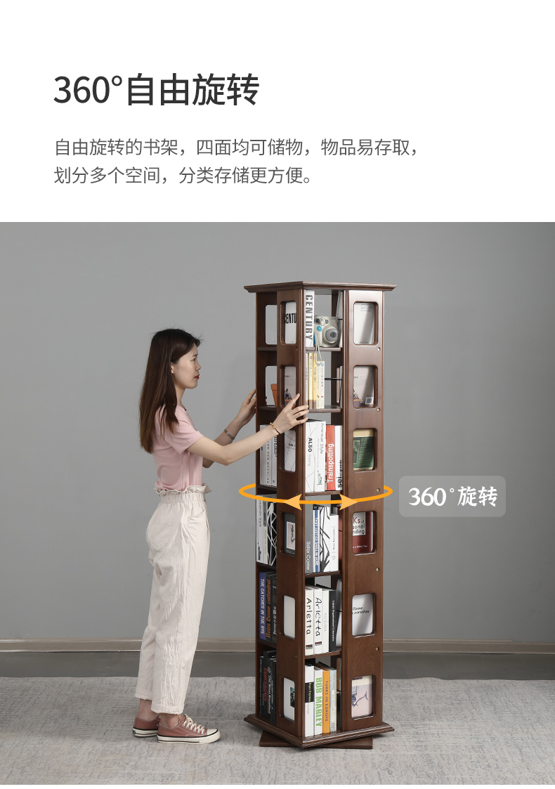 尚品全实木旋转书架360度书柜儿童学生落地书架大容量书柜置物架