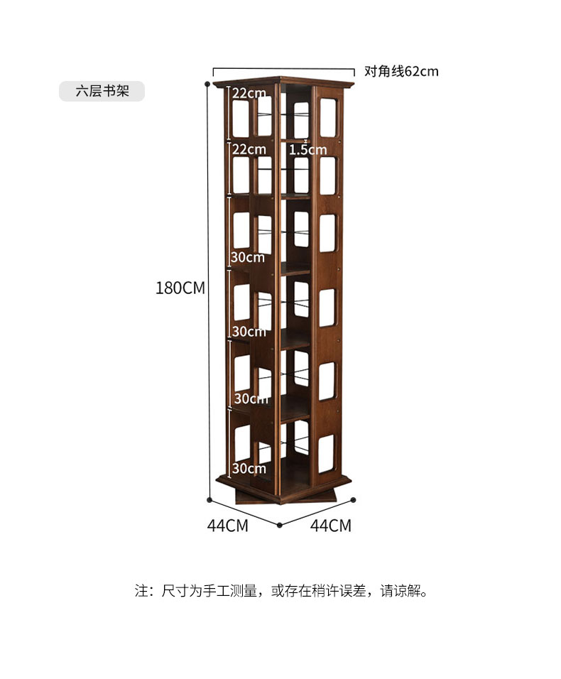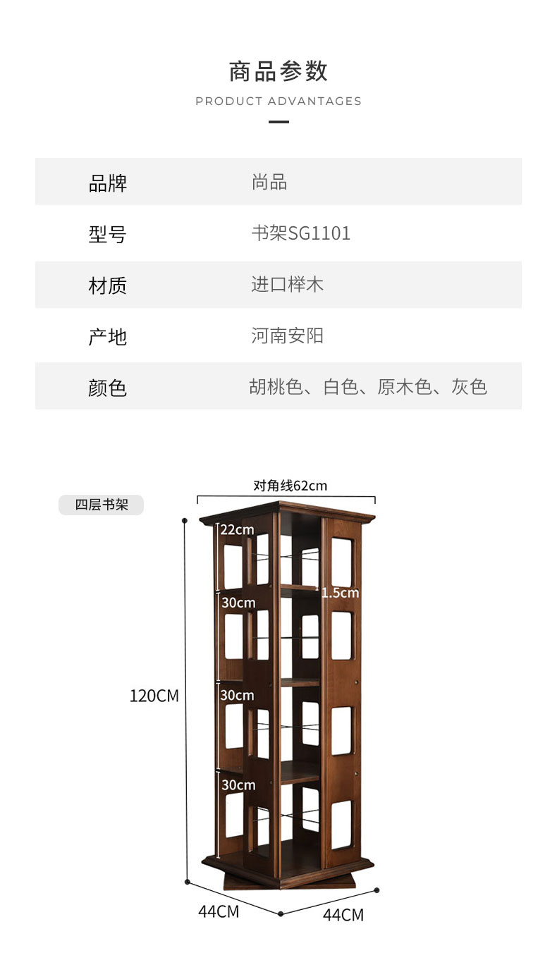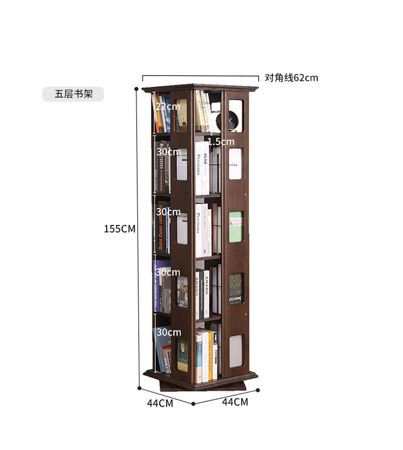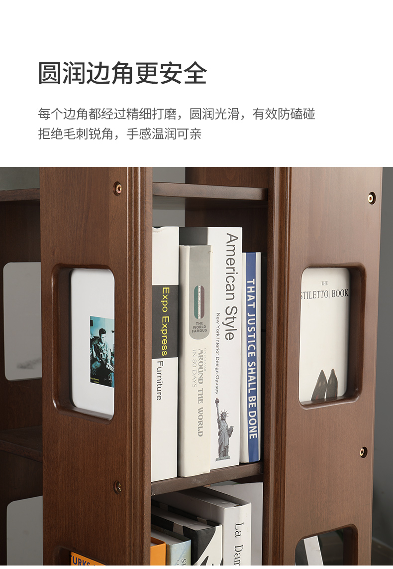 尚品全实木旋转书架360度书柜儿童学生落地书架大容量书柜置物架