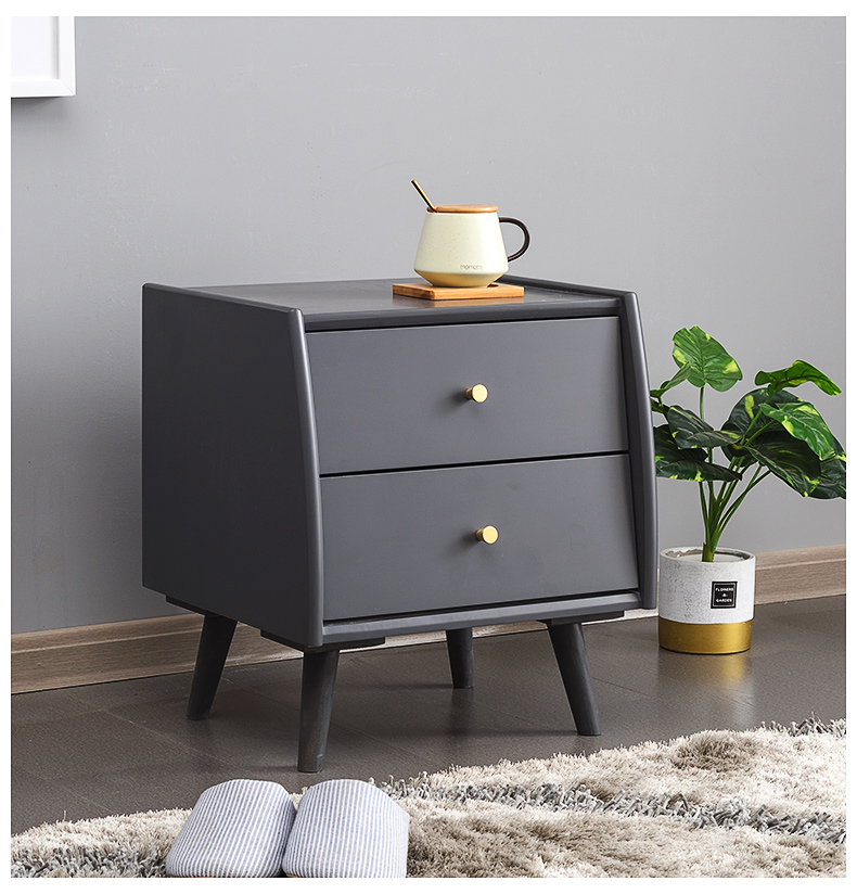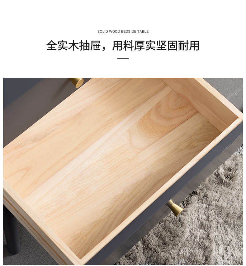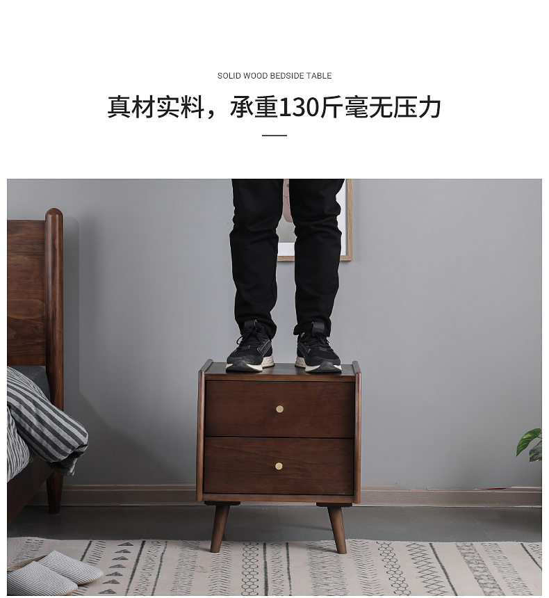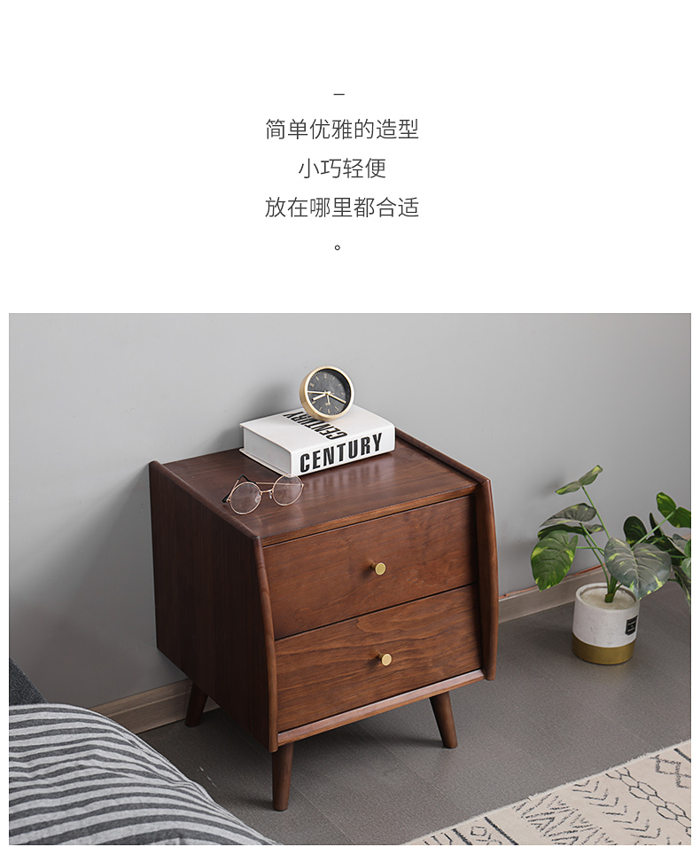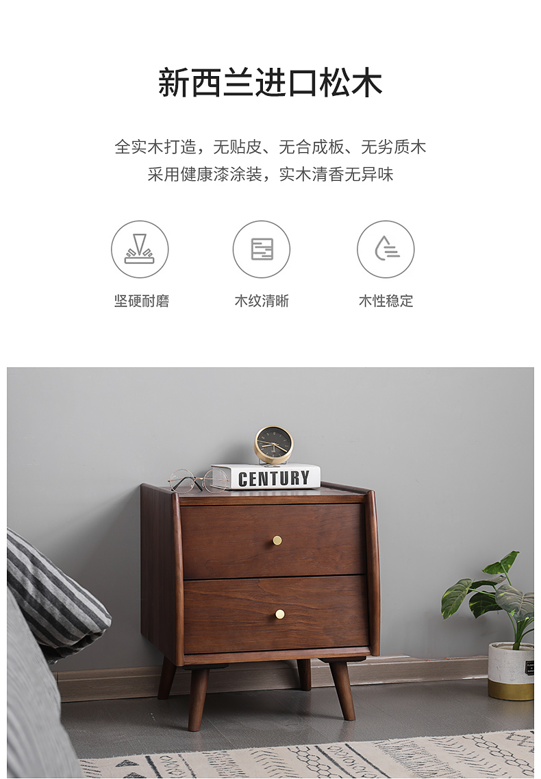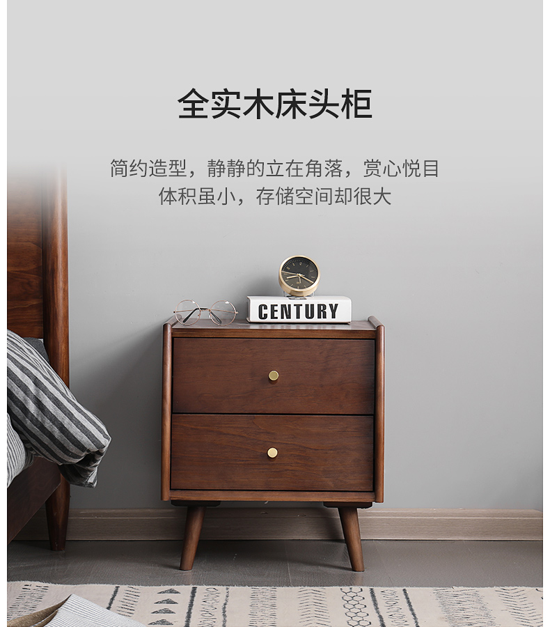尚品全实木床头柜简约现代卧室小型迷你储物柜时尚两抽纯实木北欧