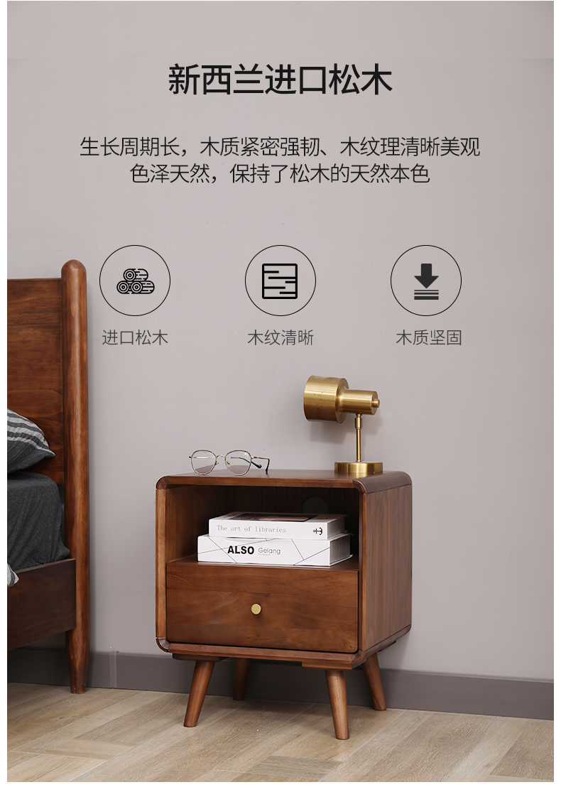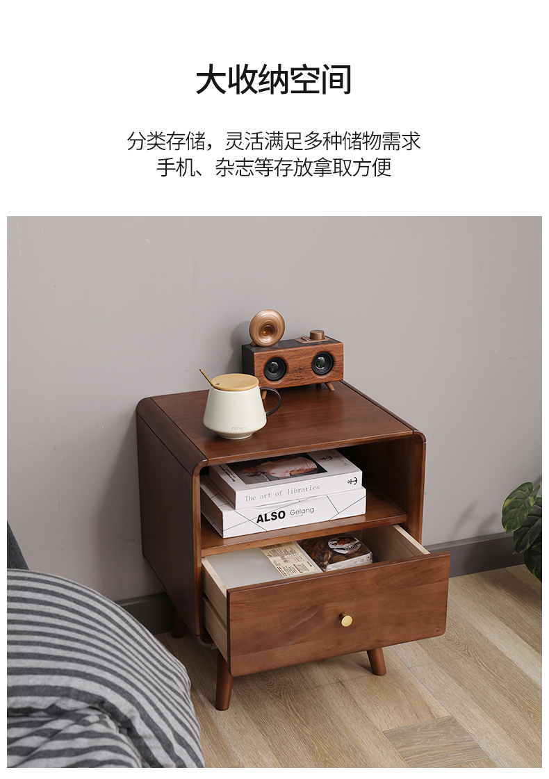 尚品全实木床头柜简约现代卧室小型床边柜小柜子多功能收纳柜北欧