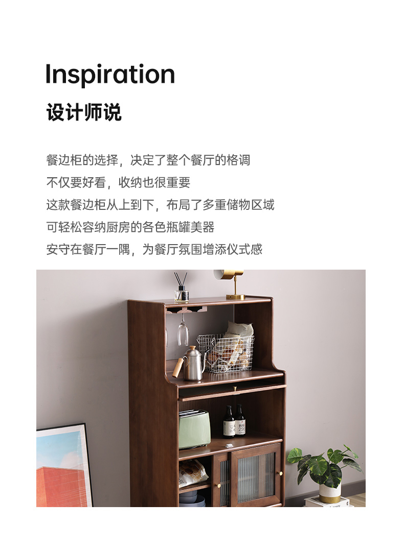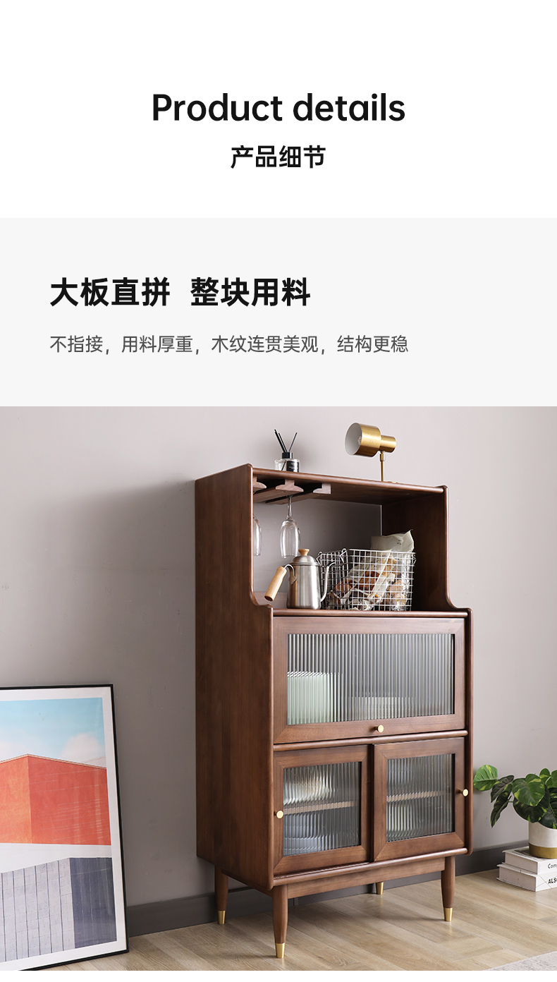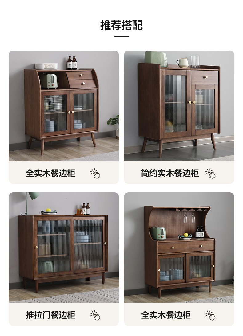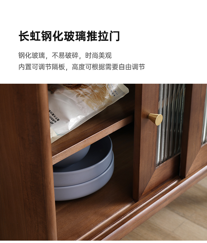 尚品实木客厅餐边柜家用靠墙茶水柜酒柜厨房碗柜收纳柜微波炉柜