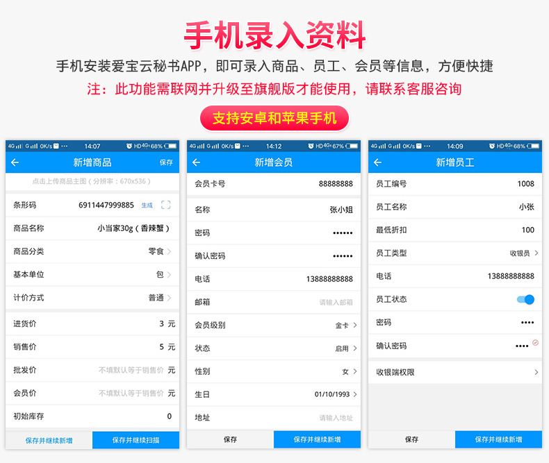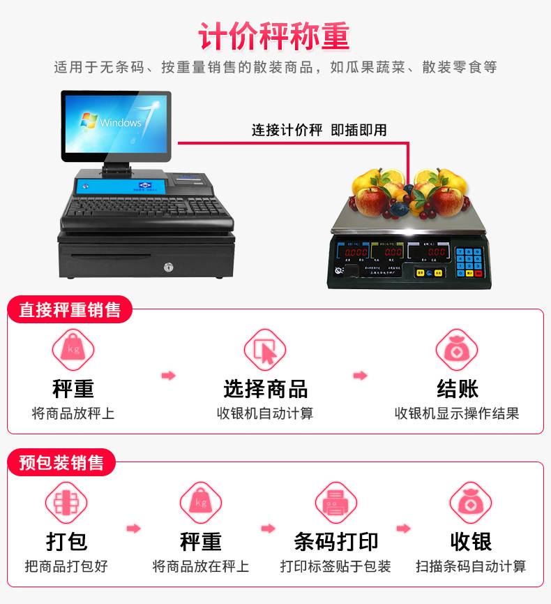 爱宝4000收银机一体机商用收款机超市便利店餐饮奶茶店化妆品小卖部水果蔬菜店称重零售小型商用收银系统服装