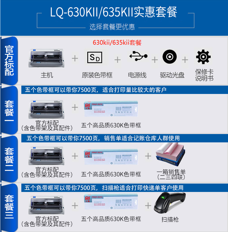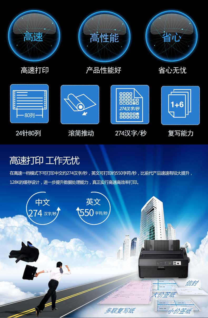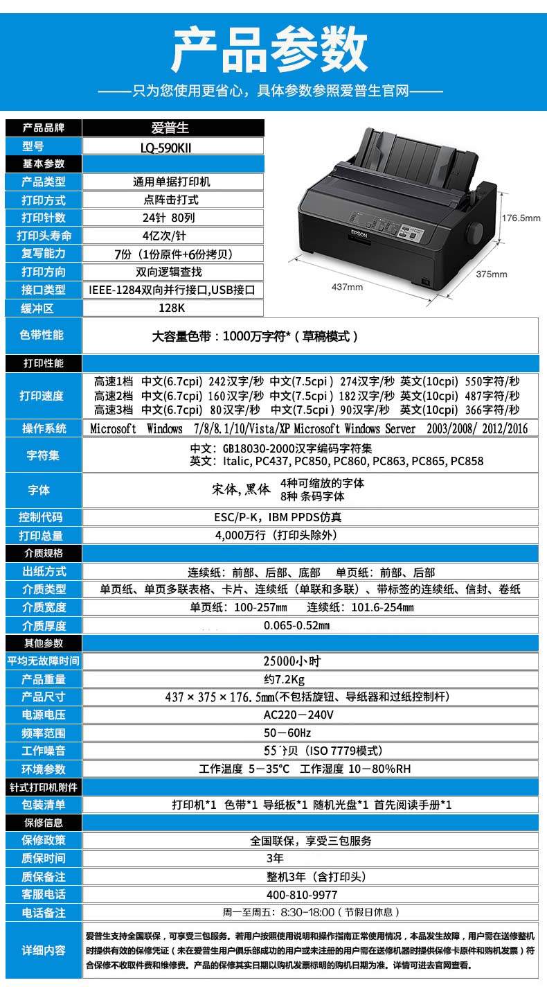 Epson爱普生LQ-595KII/615KII高速针式发票打印机出入库单收据票据80列滚筒式24针单据报表打印590KII/730KII