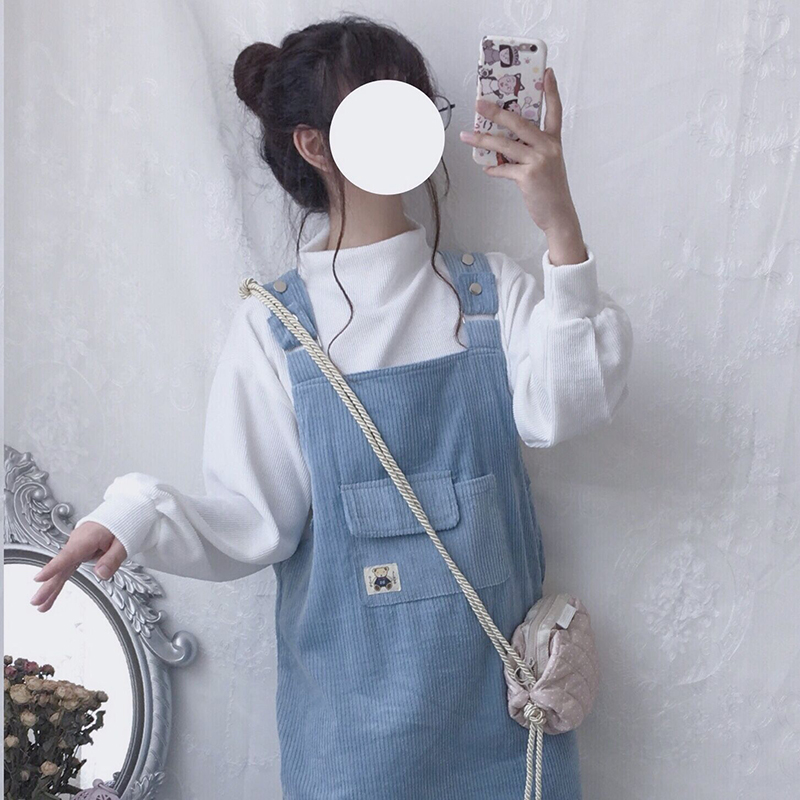 小清新连衣裙女夏2021新款甜美学生灯芯绒宽松背带裙内搭针织衫