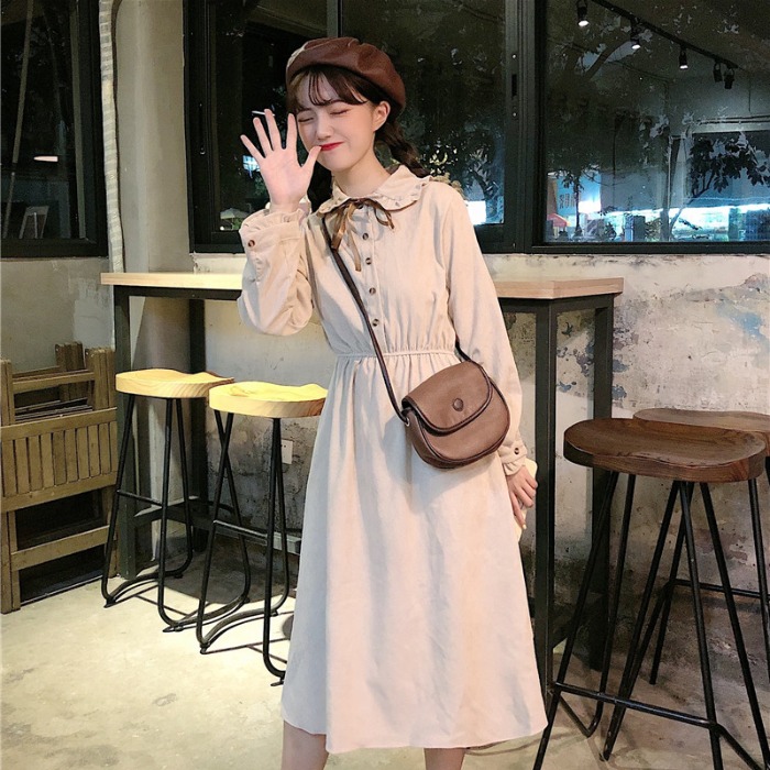 小个子冬季连衣裙女2020秋冬新款学院风灯芯绒裙子内搭气质打底裙