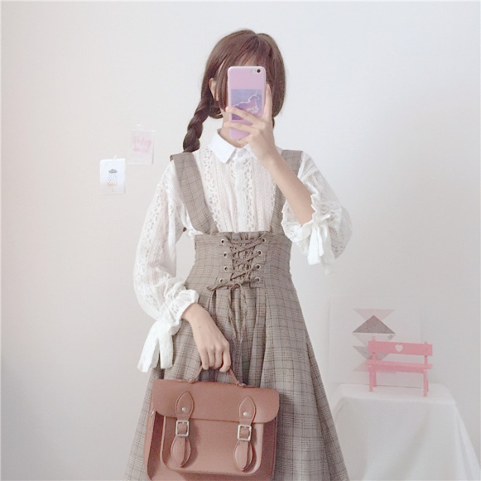 秋季套装裙女早秋新款女装日系甜美长袖衬衫+裙子背带裙两件套