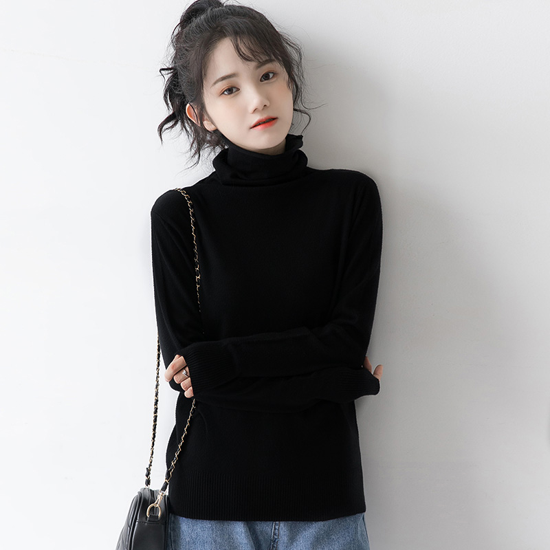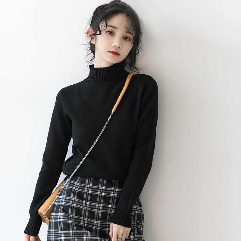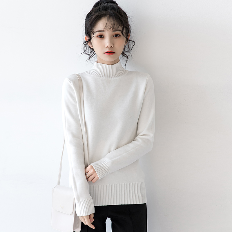 孜索2021冬季新款白色半高领针织打底衫女百搭学生长袖内搭上衣