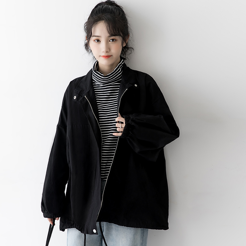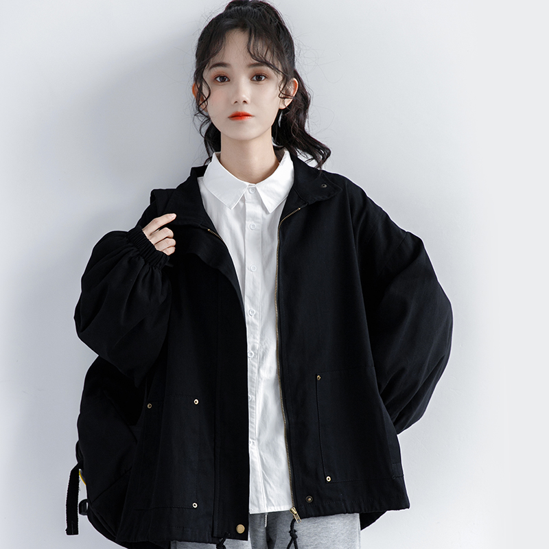 孜索2021秋季新款外套女宽松韩范休闲工装BF复古港风长袖黑色夹克