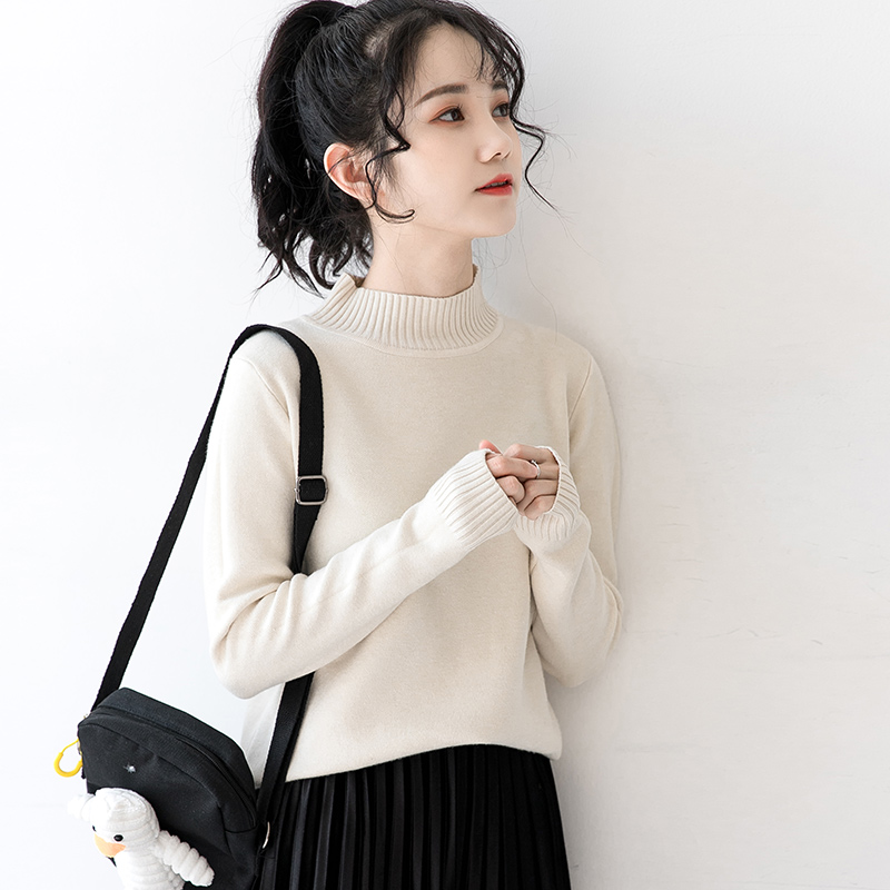 孜索2021冬季新款半高领毛衣女百搭长袖打底衫学生内搭杏色针织衫