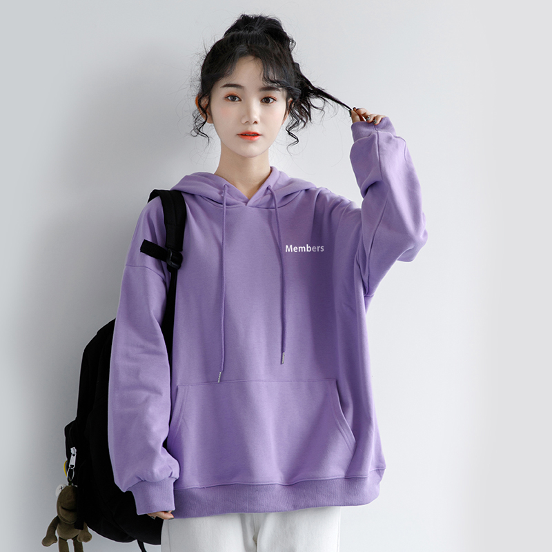 2021秋季新款港风字母印花连帽紫色卫衣女春秋薄款宽松BF风上衣潮