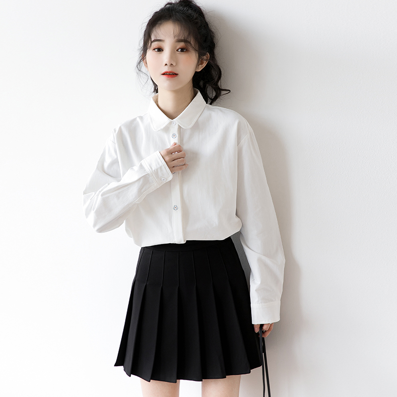 2021秋季新款学院白色衬衫女宽松韩版学生白衬衣春秋长袖polo上衣