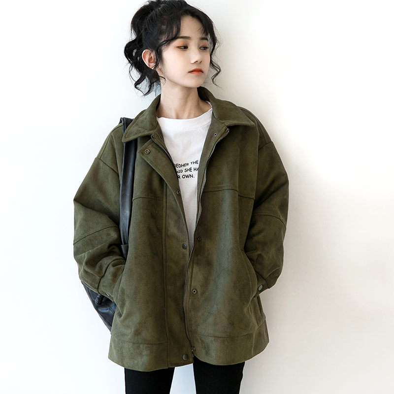 孜索2021春秋新款复古港风夹棉加厚外套女宽松休闲BF韩版麂皮夹克