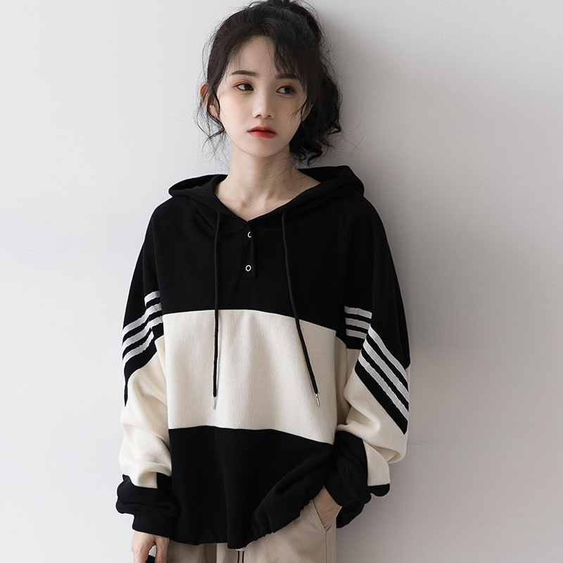 孜索2021秋季新款卫衣女宽松韩版春秋BF风拼色连帽套头上衣潮ins