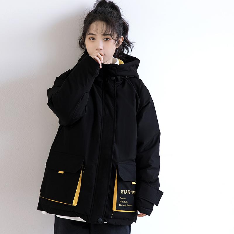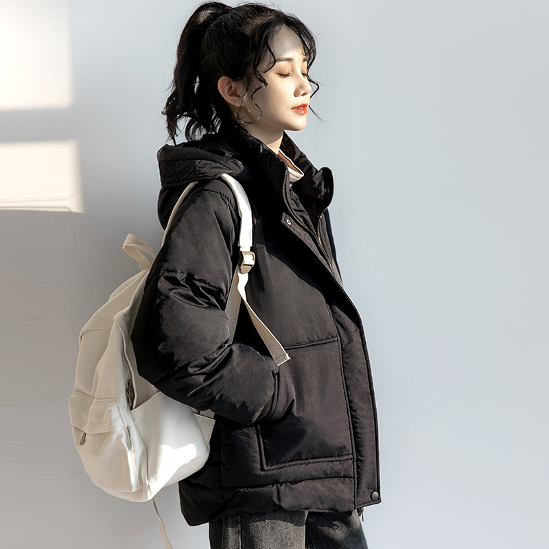 孜索2021冬季新款黑色棉服女宽松加厚连帽短款棉衣学生韩版外套潮