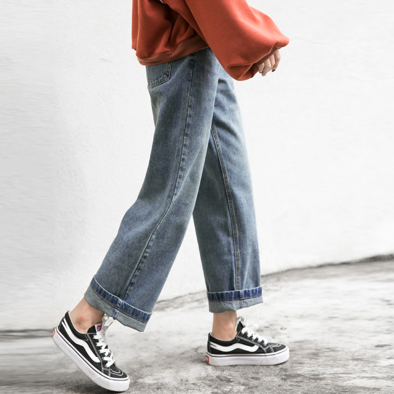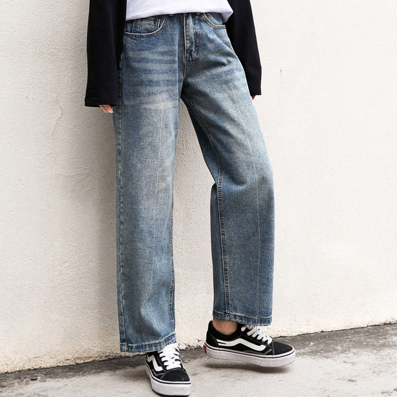 孜索2020秋季新款韩版复古chic牛仔裤女宽松百搭学生BF风直筒裤潮