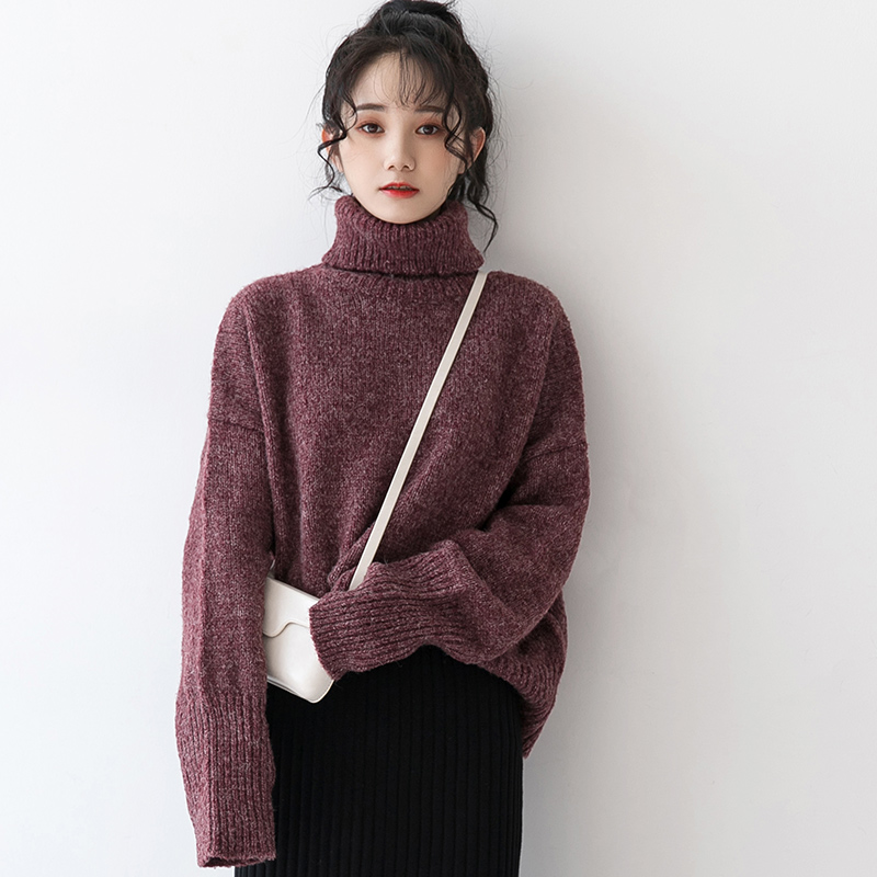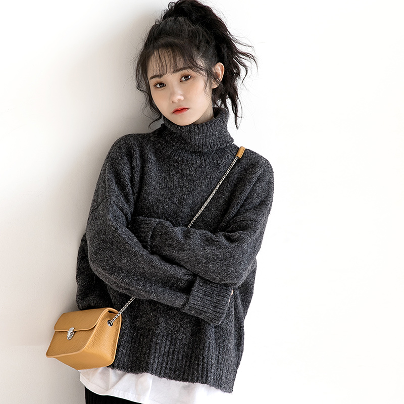 孜索2021冬季新款复古灰色高领毛衣女宽松百搭慵懒风打底针织上衣
