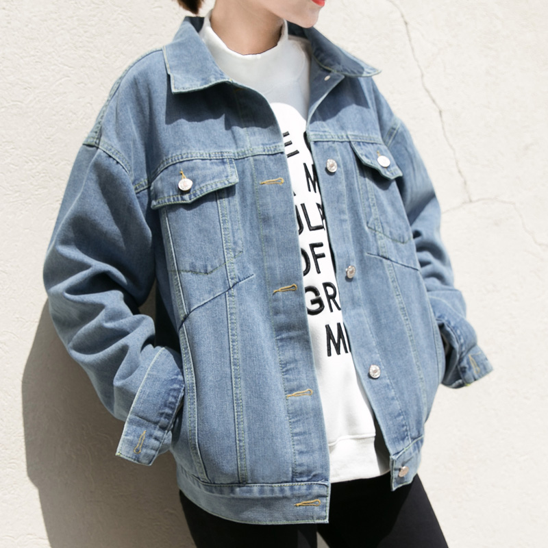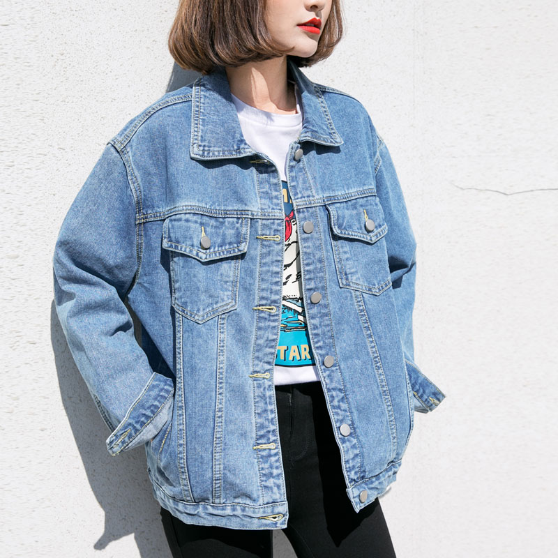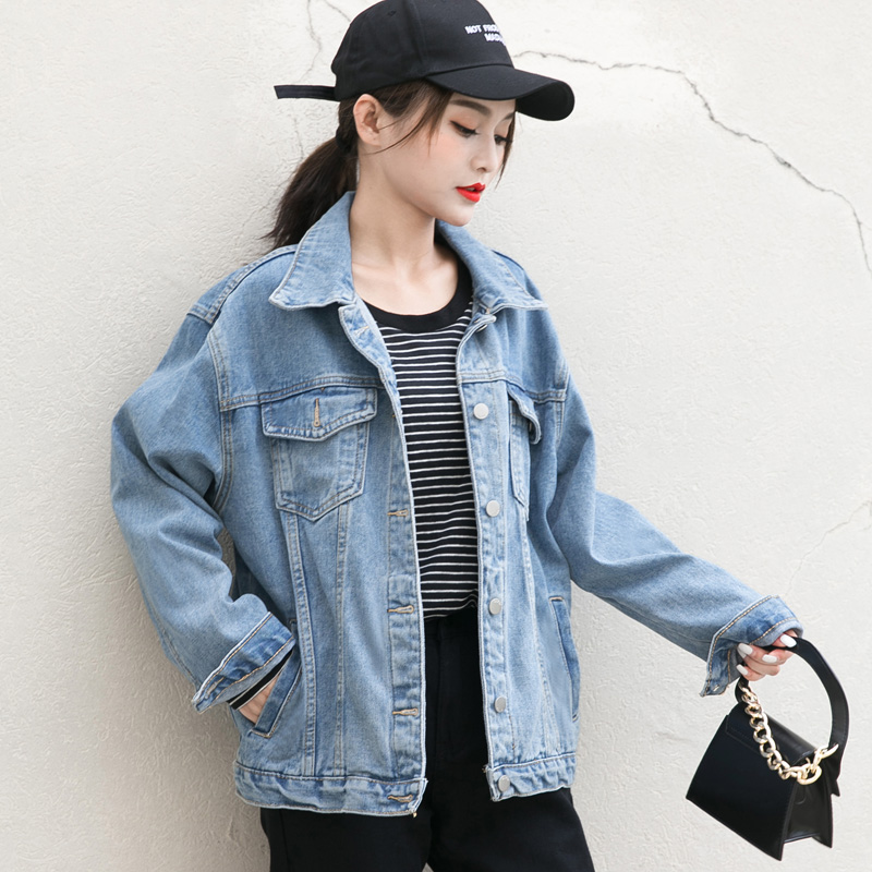 孜索2021春秋新款女装韩版百搭牛仔外套BF宽松休闲牛仔衣学生上衣