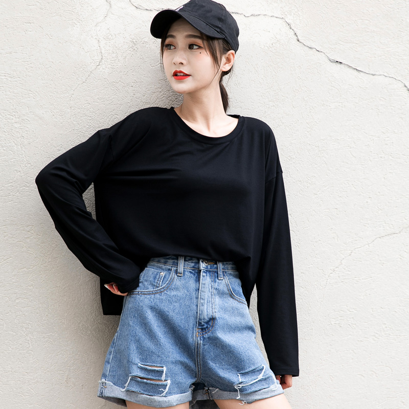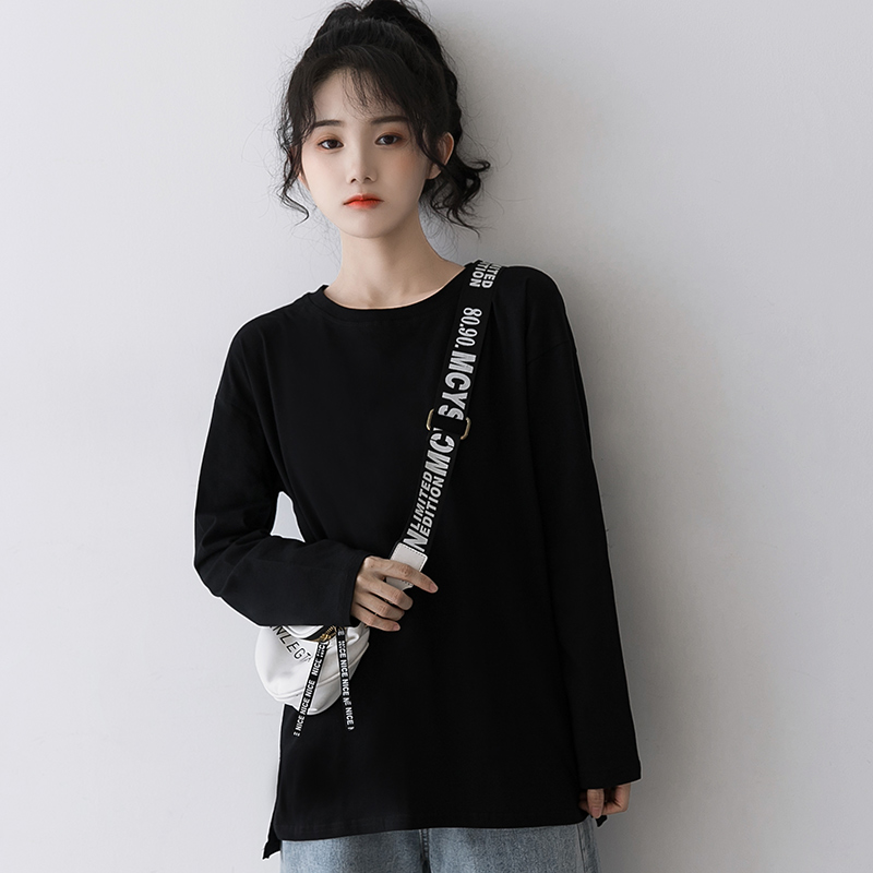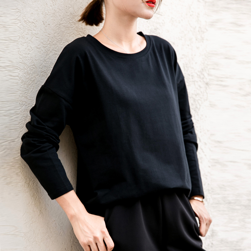 孜索2020春装新款女装宽松简约黑色长袖t恤打底衫纯色外穿秋衣