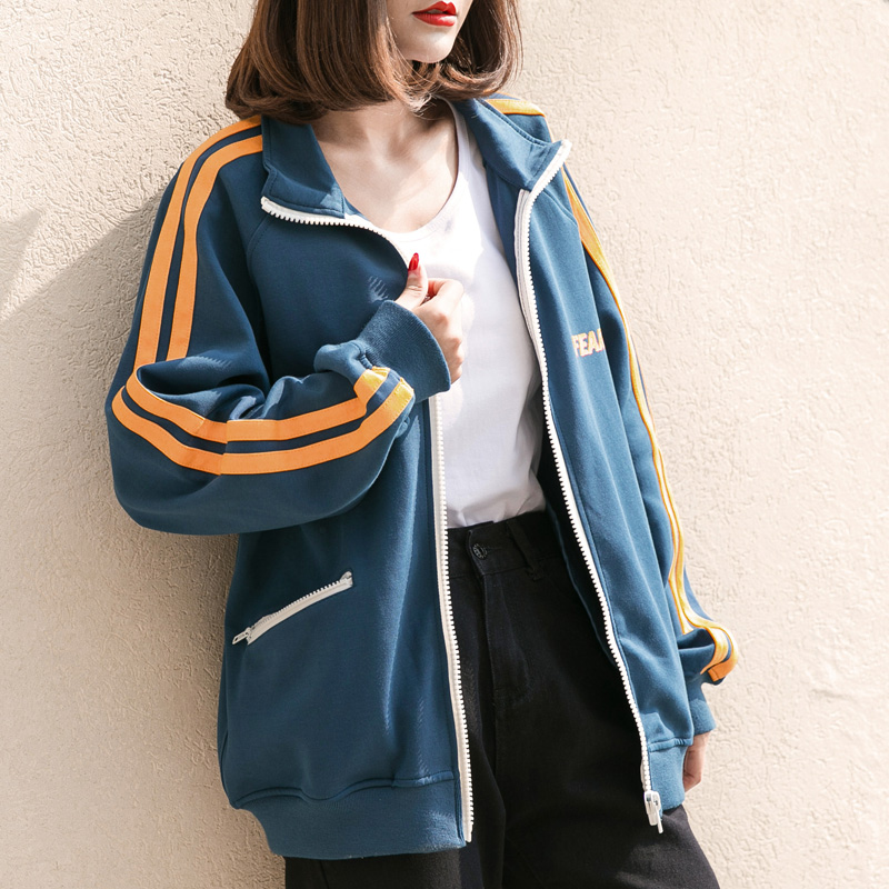 孜索2020春秋新款嘻哈街头潮款外套女棒球服宽松学生条纹长袖夹克