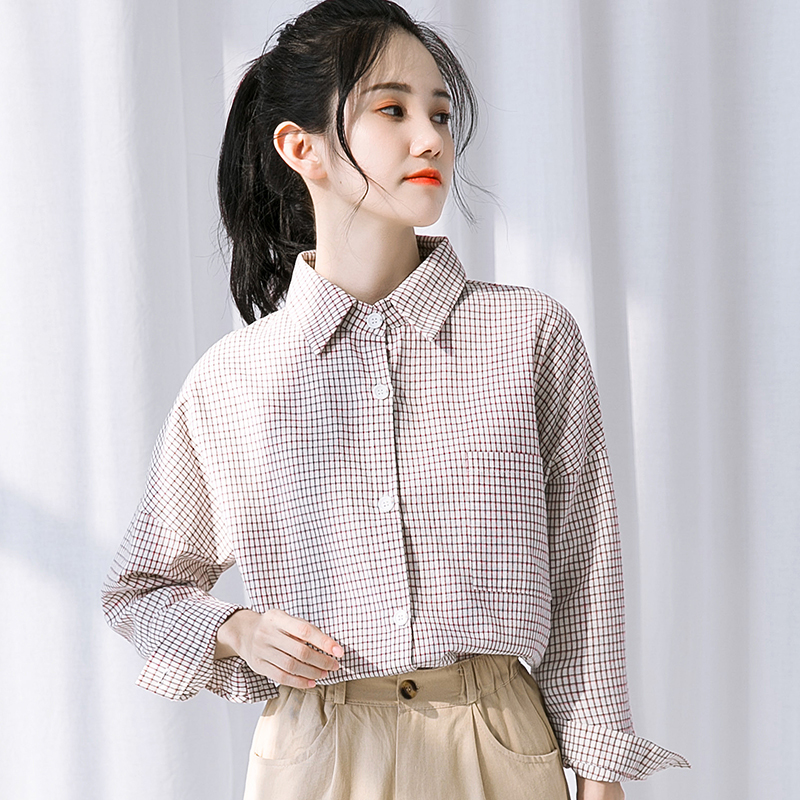 孜索2021秋季宽松格子衬衫女学生日系复古百搭长袖衬衣休闲上衣潮