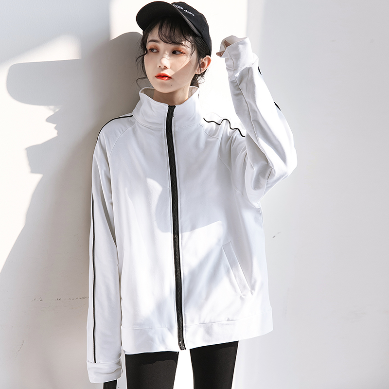 孜索2021新款秋季白色外套女百搭韩版港风开学季夹克棒球服BF卫衣