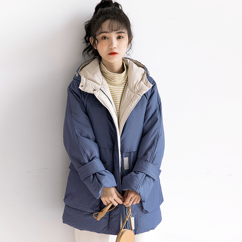 孜索2021冬季新款杏色短款棉服女学生森系宽松连帽棉衣学生面包服