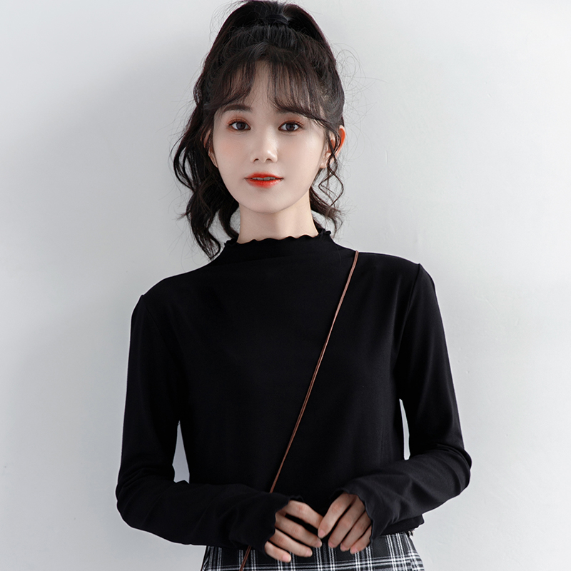 2021秋冬新款黑色小半高领打底衫女舒适薄款内搭长袖T恤春秋上衣