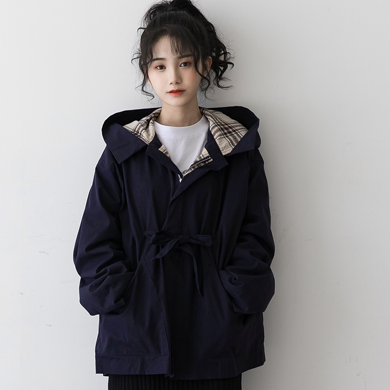 孜索2021秋季新款外套女春秋韩版宽松百搭BF风夹克连帽休闲风衣潮