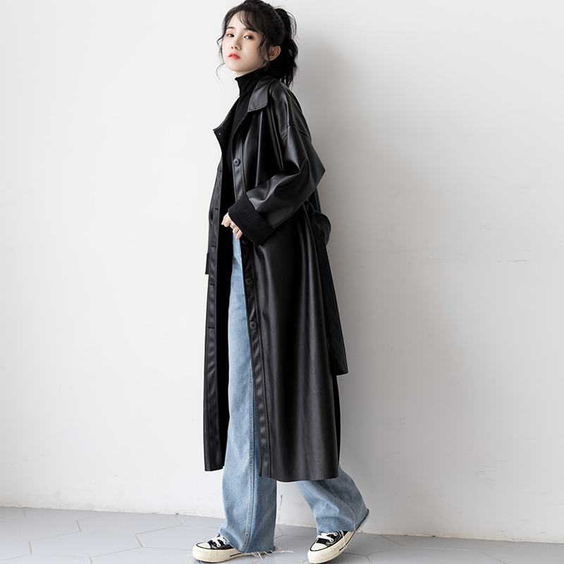 孜索2021秋冬新款长款皮衣风衣女宽松韩版春秋皮外套中长款皮大衣