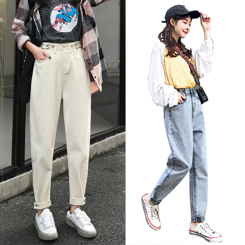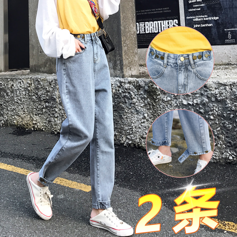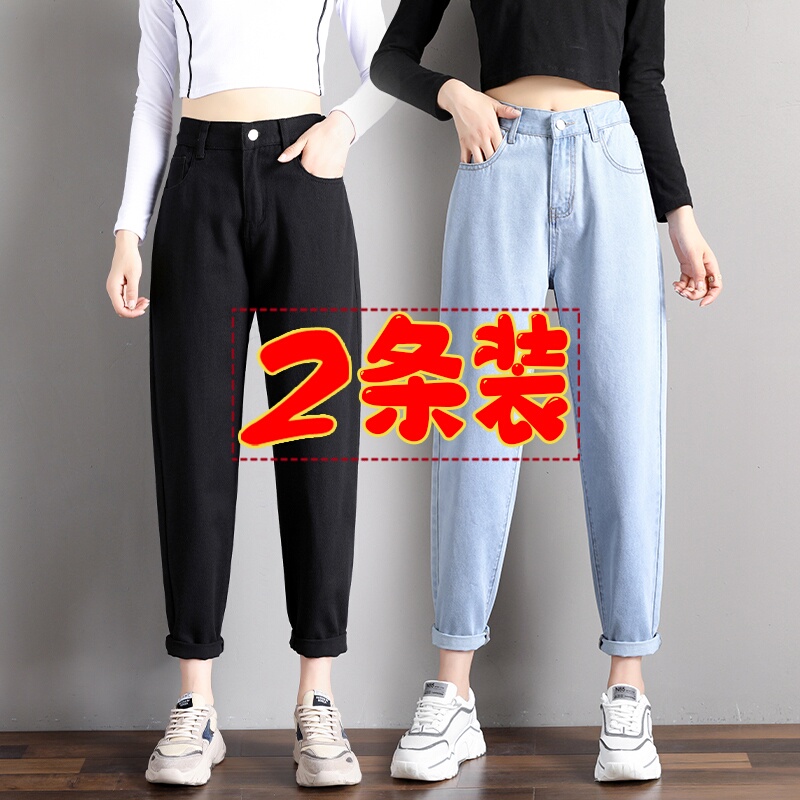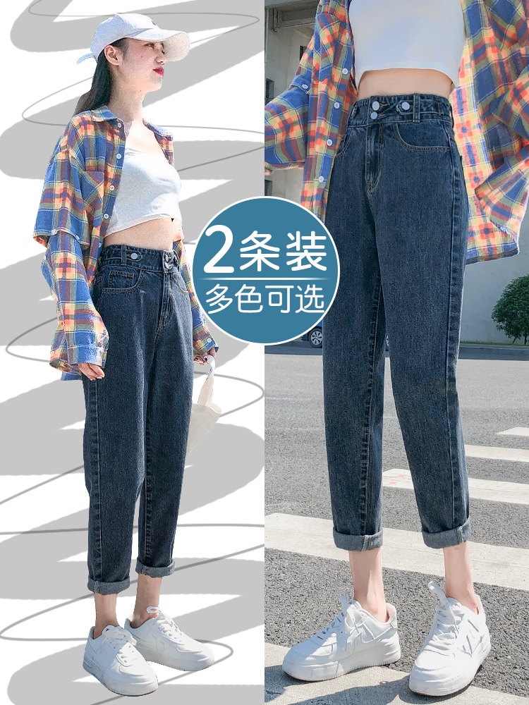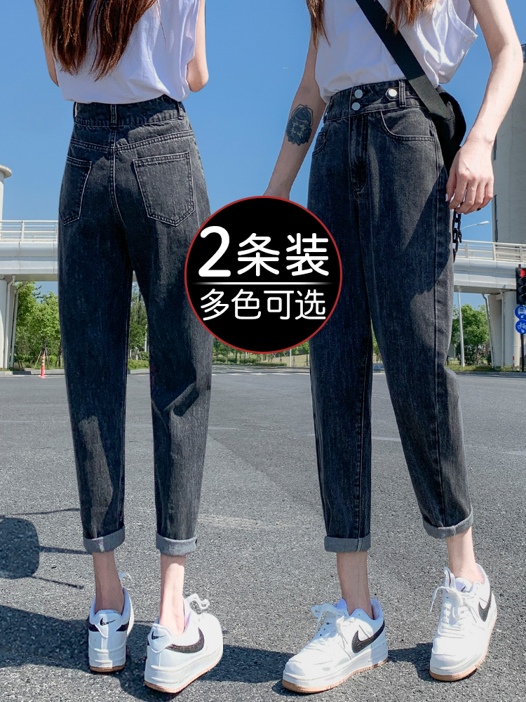 2021年新款高腰哈伦牛仔裤女春秋季宽松显瘦显高小个子修身九分裤