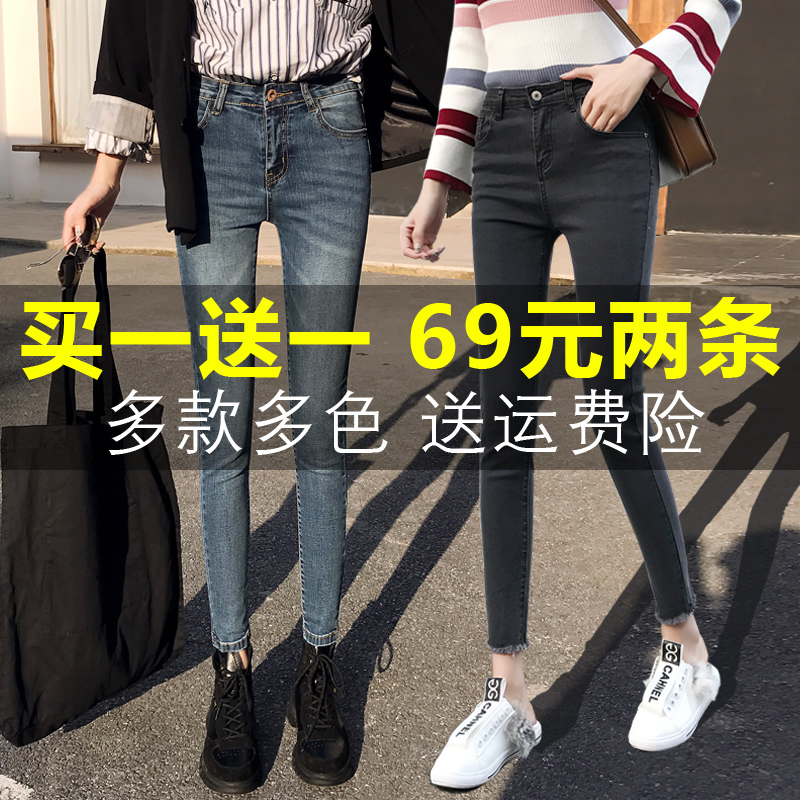 高腰牛仔裤女春秋季2021新款韩版修身显瘦百搭紧身小脚九分长裤子