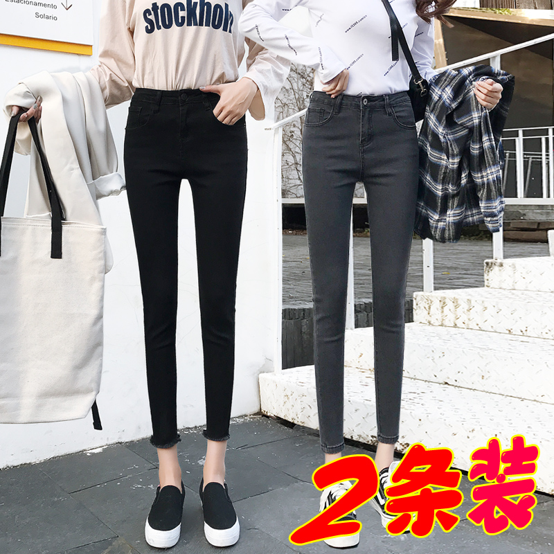 高腰紧身牛仔裤女小脚2021年新款夏季韩版潮显瘦百搭黑色九分裤子