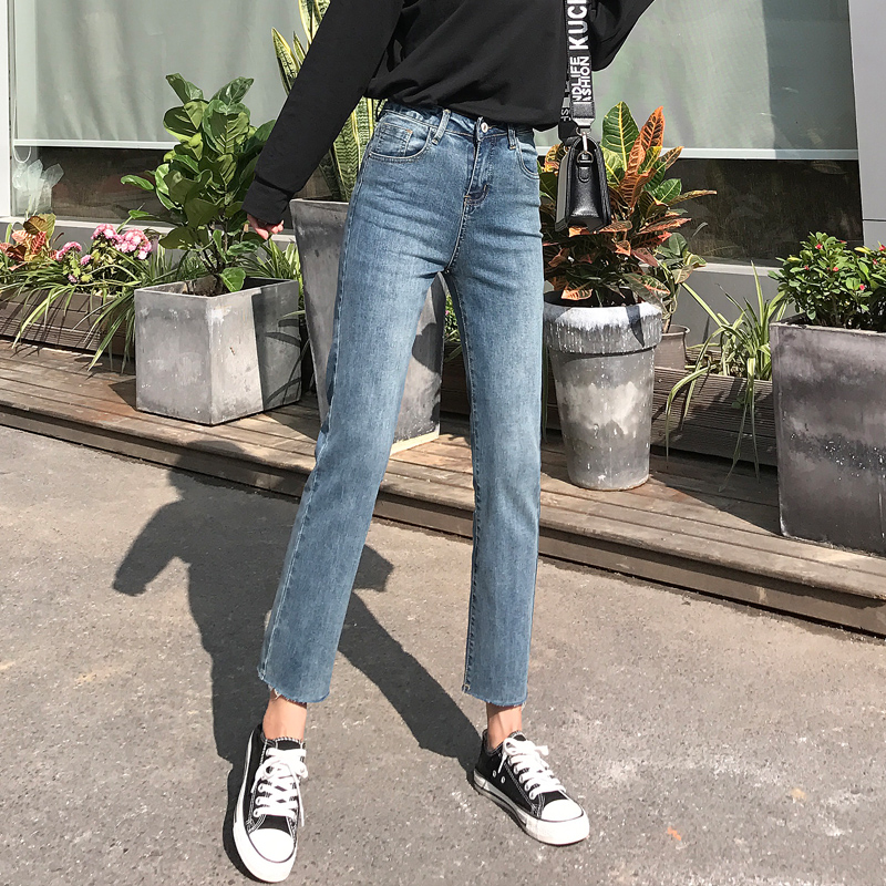春秋季牛仔裤女2021年新款高腰修身时尚直筒显瘦显高百搭烟管裤女