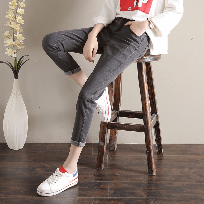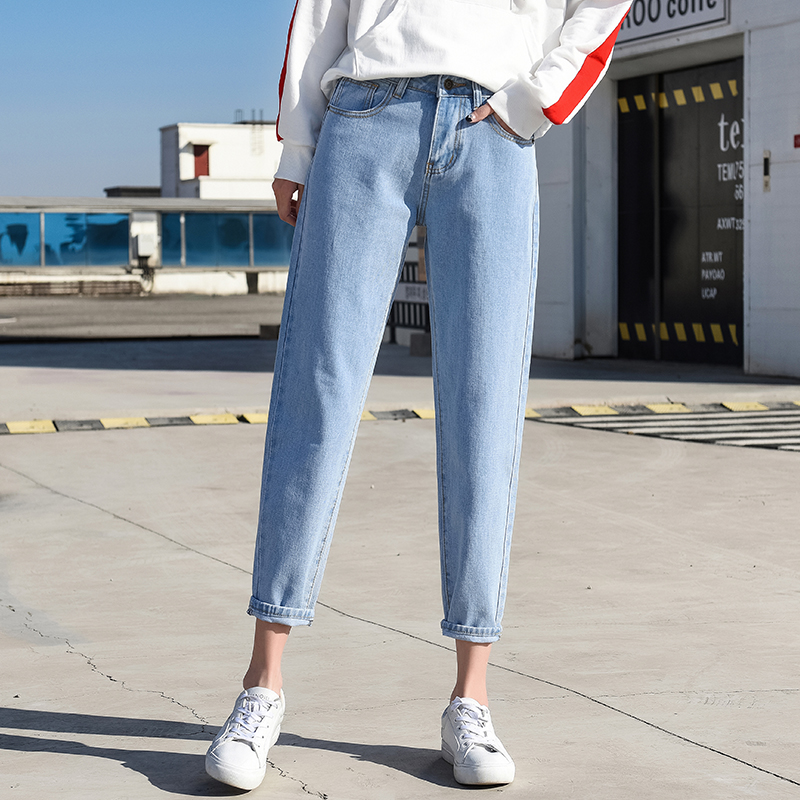 韩版显瘦牛仔裤女直筒宽松2021年新款九分萝卜哈伦裤春秋百搭长裤