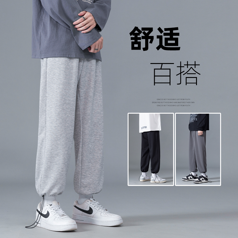 灰色运动裤男生春秋款大码抽绳束脚休闲长裤子男韩版潮流宽松卫裤
