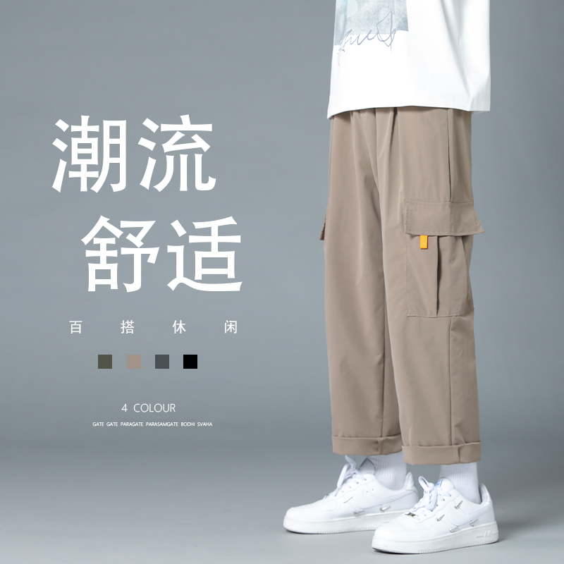 卡其色工装裤男宽松直筒春秋痞帅休闲长裤子ins加肥加大宽松港风