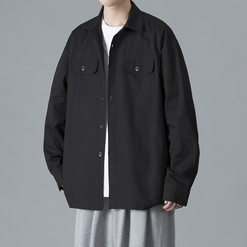 日系复古工装衬衫男长袖春秋季宽纯棉松韩版潮流休闲2021新款上衣