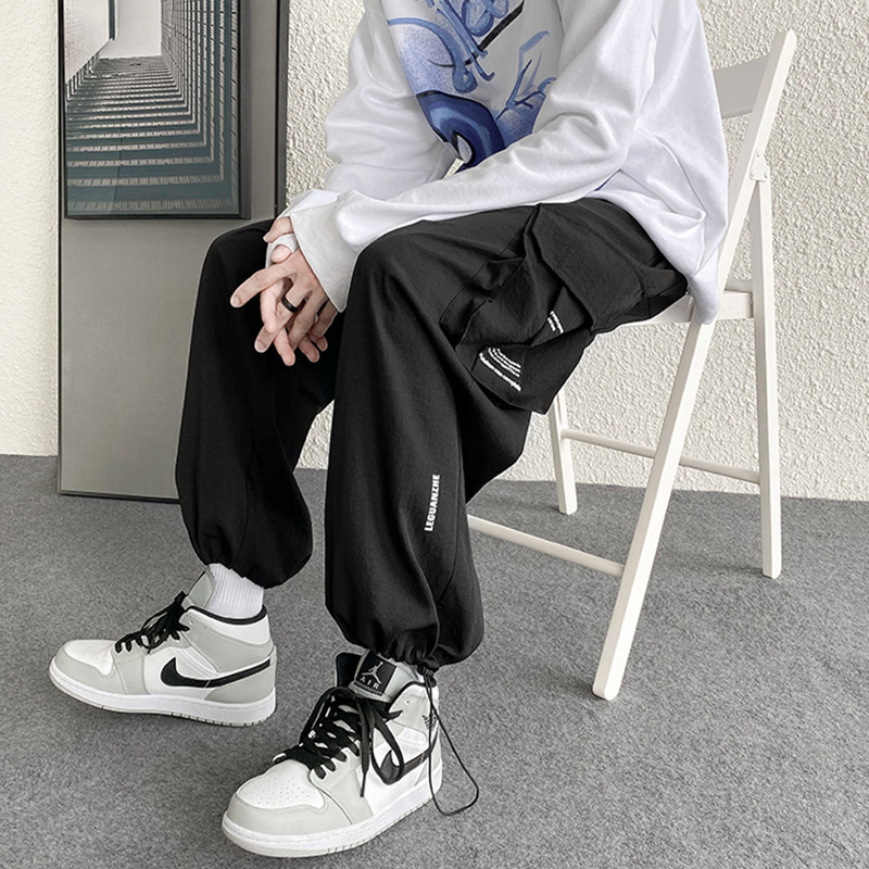 大口袋工装裤男士春秋夏季薄款宽松大码潮牌胖束脚百搭休闲长裤子