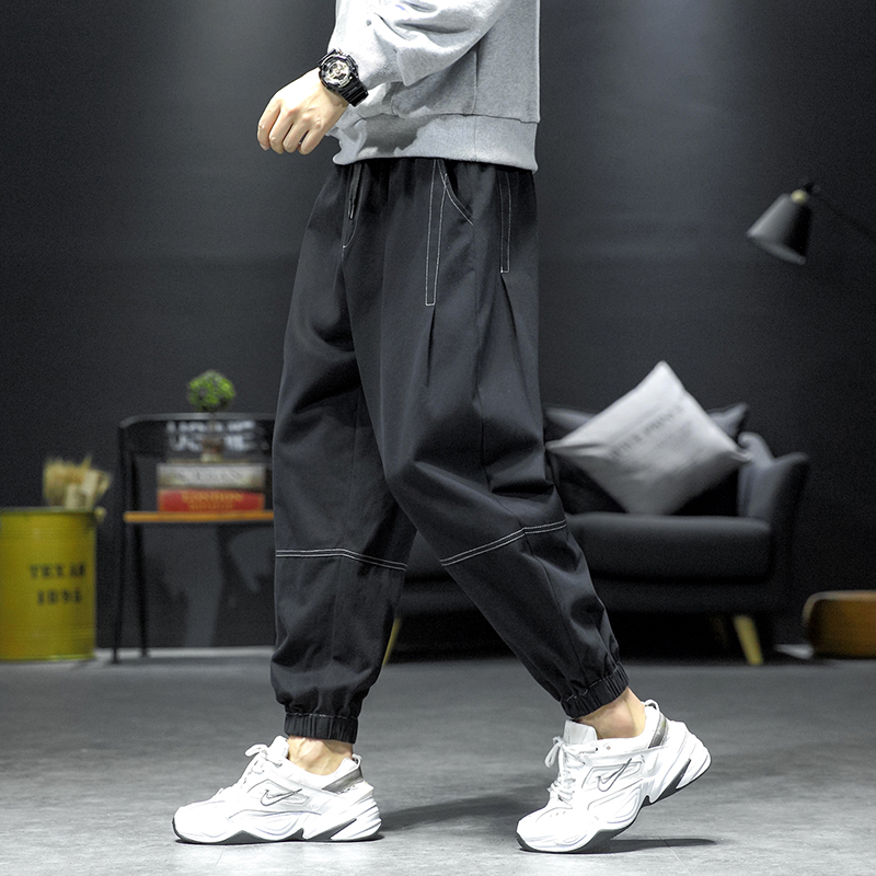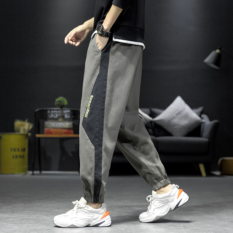 拼接裤子男ins潮流百搭春秋韩版宽松休闲束脚运动大码胖子九分裤