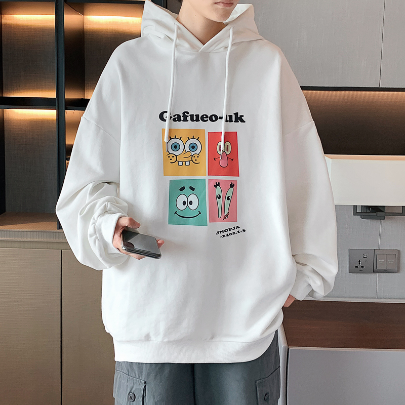 动漫白色卫衣男士潮ins连帽春秋款宽松大码潮流百搭外套休闲港风