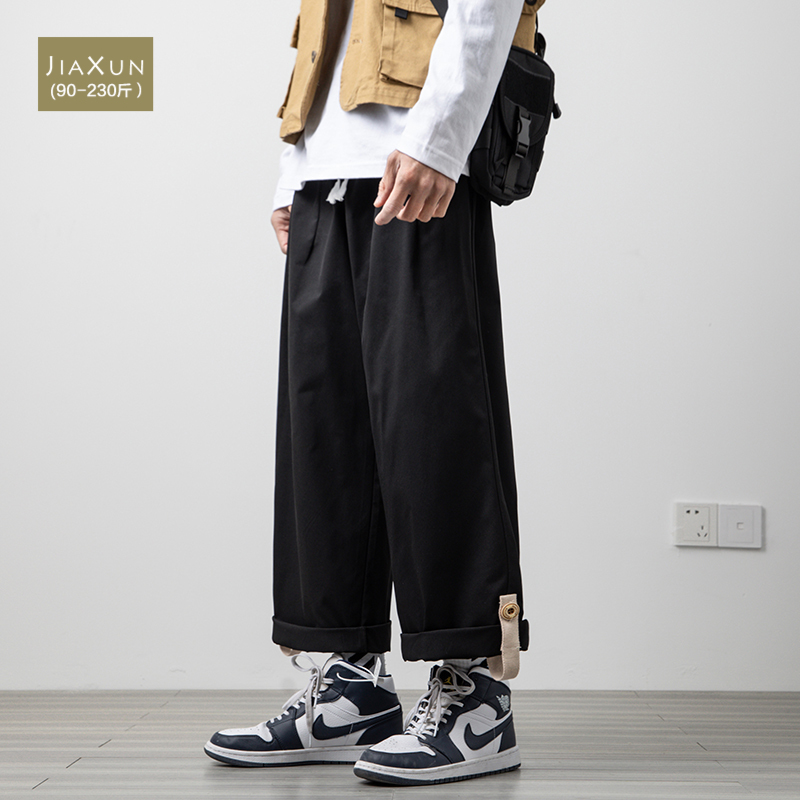 卷边搭扣裤子男士宽松直筒春秋夏季潮流大码九分休闲裤男阔腿坠感